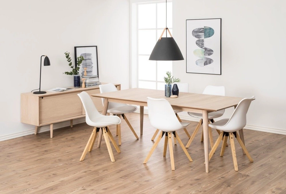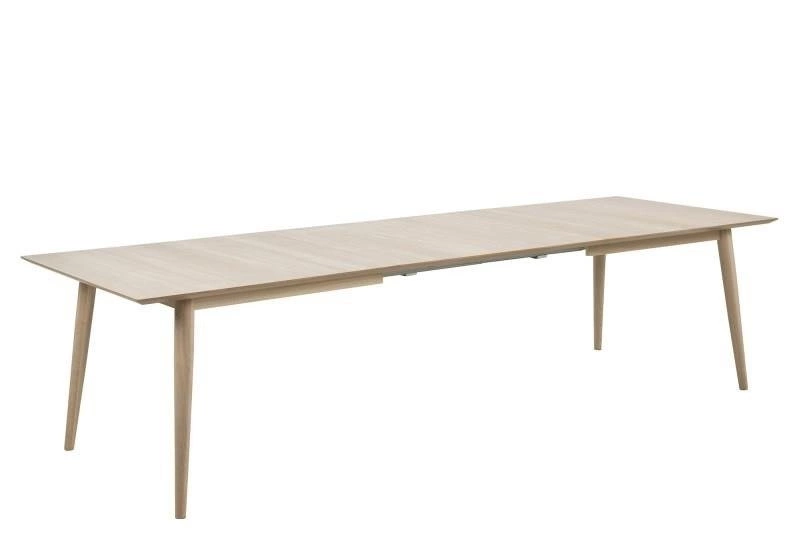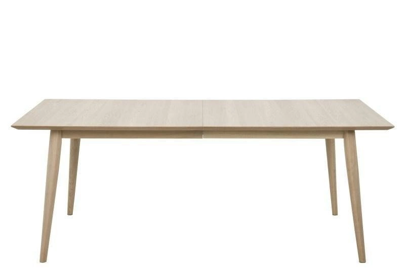 Stół Century naturalny to połączenie prostej, skandynawskiej estetyki z praktycznymi rozwiązaniami. Wykonany z naturalnego forniru drewna dębowego, z fornirowanym blatem, jest nie tylko stylowy, ale i wytrzymały. Jego jasne, elegancko toczone nóżki zwężają się u dołu, co dodaje mu lekkości i nowoczesnego charakteru. Blat stołu pokryty jest dębowym fornirem i charakteryzuje się ładnie zaciętymi brzegami. Całość wykończona jest bielonym olejem, co podkreśla naturalne piękno drewna. Dodatkowo, blat stołu dzieli się na dwie części, co umożliwia schowanie pod nim dodatkowych blatów, które możemy dokupić - idealne rozwiązanie na większe spotkania rodzinne czy przyjęcia.