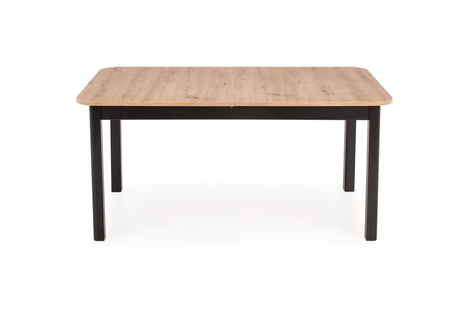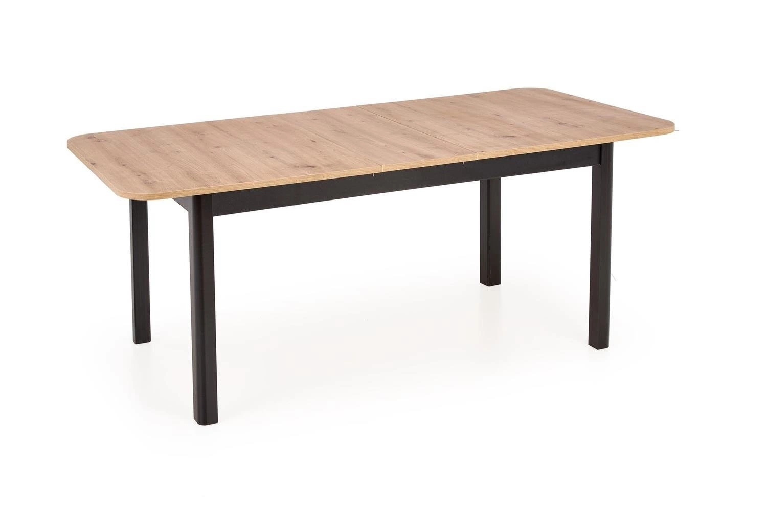Blat w kolorze dąb artisan, a nogi w czarnym kolorze to połączenie, które pasuje do wielu różnych stylów wnętrzarskich, od loftowego po tradycyjny. Stół Flora to nie tylko praktyczny mebel, ale również estetyczny element dekoracyjny. Prostokątny kształt blatu oraz elegancki wygląd sprawiają, że będzie on doskonale prezentował się w każdym pomieszczeniu. Wysokość stołu wynosi 76 cm, co pozwala na wygodne korzystanie z niego podczas spożywania posiłków.Rozkładany blat to dodatkowa zaleta, która pozwala na zmianę rozmiaru stołu w zależności od potrzeb.