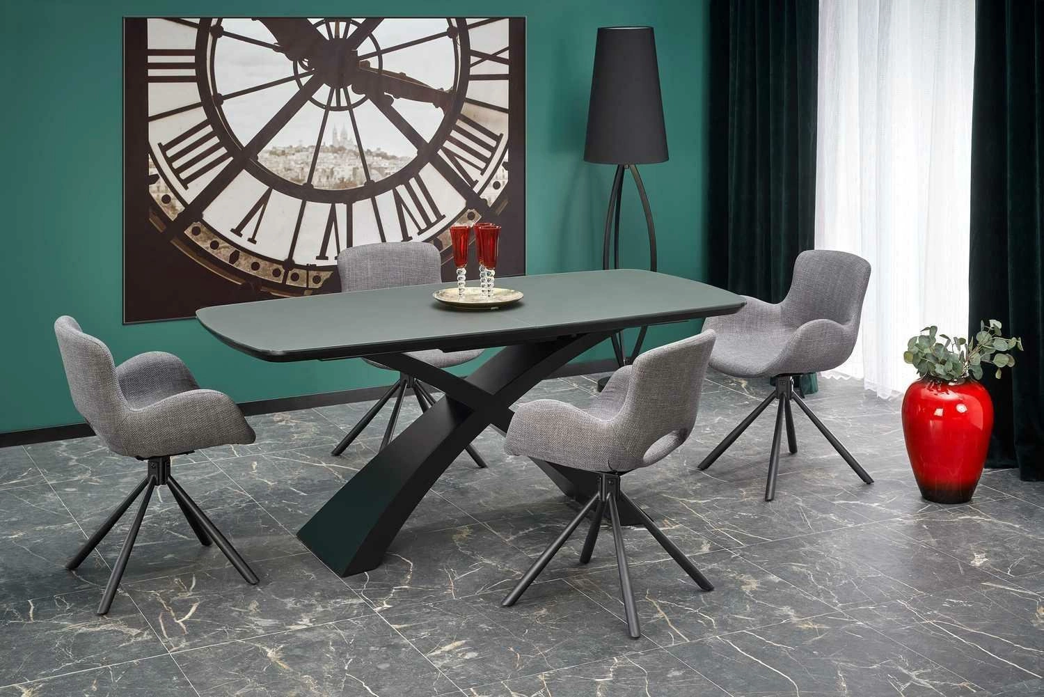 Blat stołu wykonany jest z wysokiej jakości MDF lakierowanego oraz szkła, co zapewnia nie tylko elegancki wygląd, ale również trwałość i wytrzymałość na wiele lat użytkowania. Kolorystyka stołu w odcieniach ciemnego popielu oraz czarnych nóg, idealnie wpisuje się w nowoczesne trendy aranżacji wnętrz. Solidna konstrukcja i wysokiej jakości materiały, sprawiają że ten stół to inwestycja na lata.