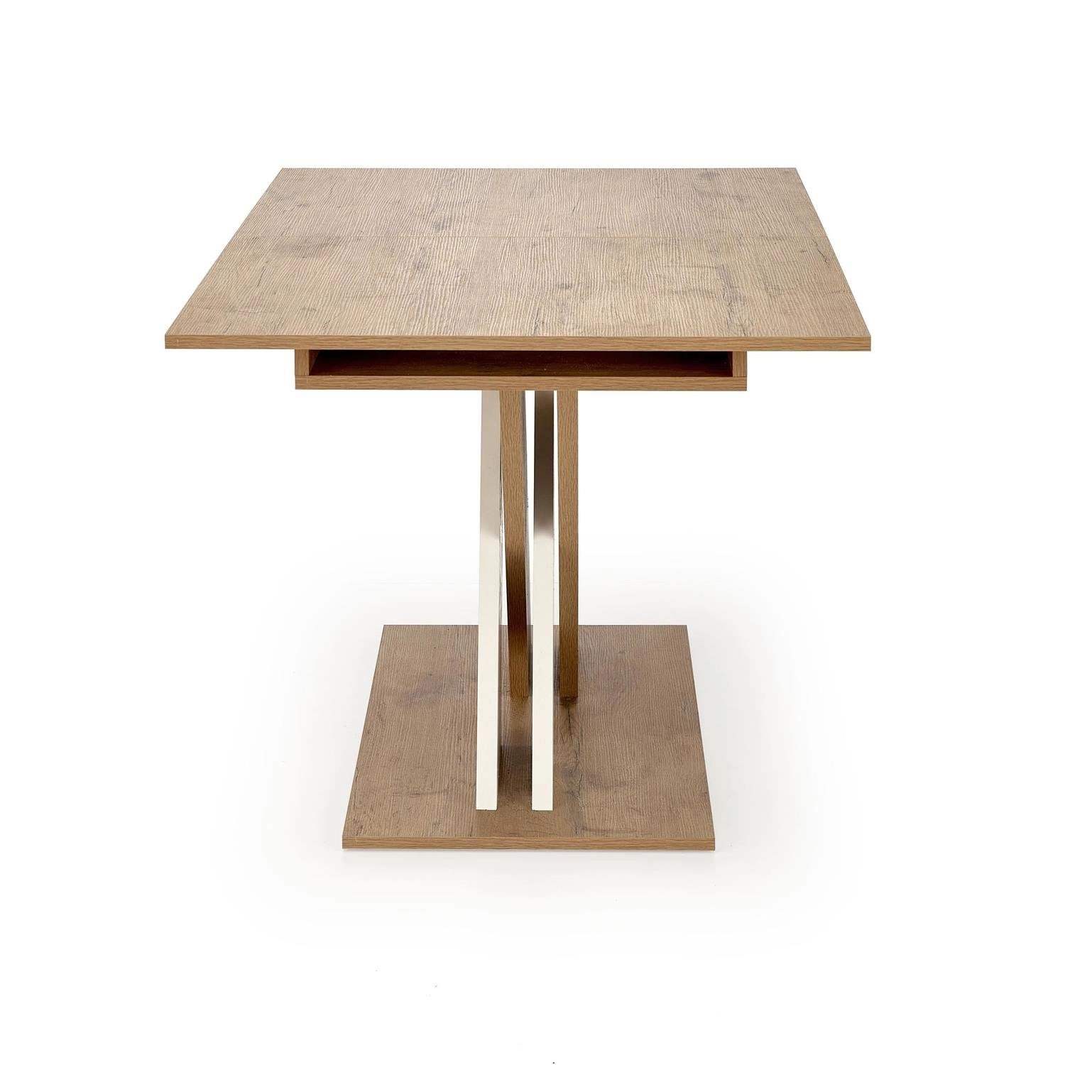 Został wykonany z wysokiej jakości okleinowanej płyty meblowej, co zapewnia trwałość i łatwość w utrzymaniu czystości. Blat prostokątny o wymiarach 130-175/85 cm został wykonany z płyty laminowanej, co sprawia, że jest odporny na uszkodzenia mechaniczne oraz łatwy do czyszczenia.