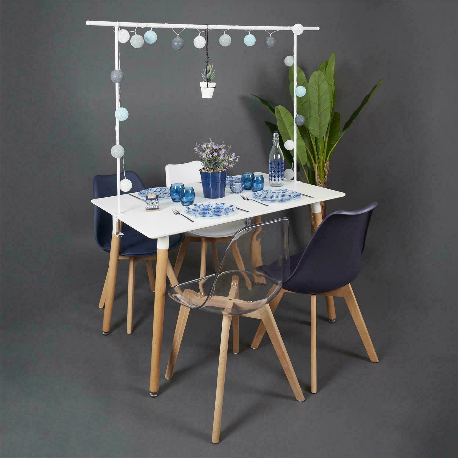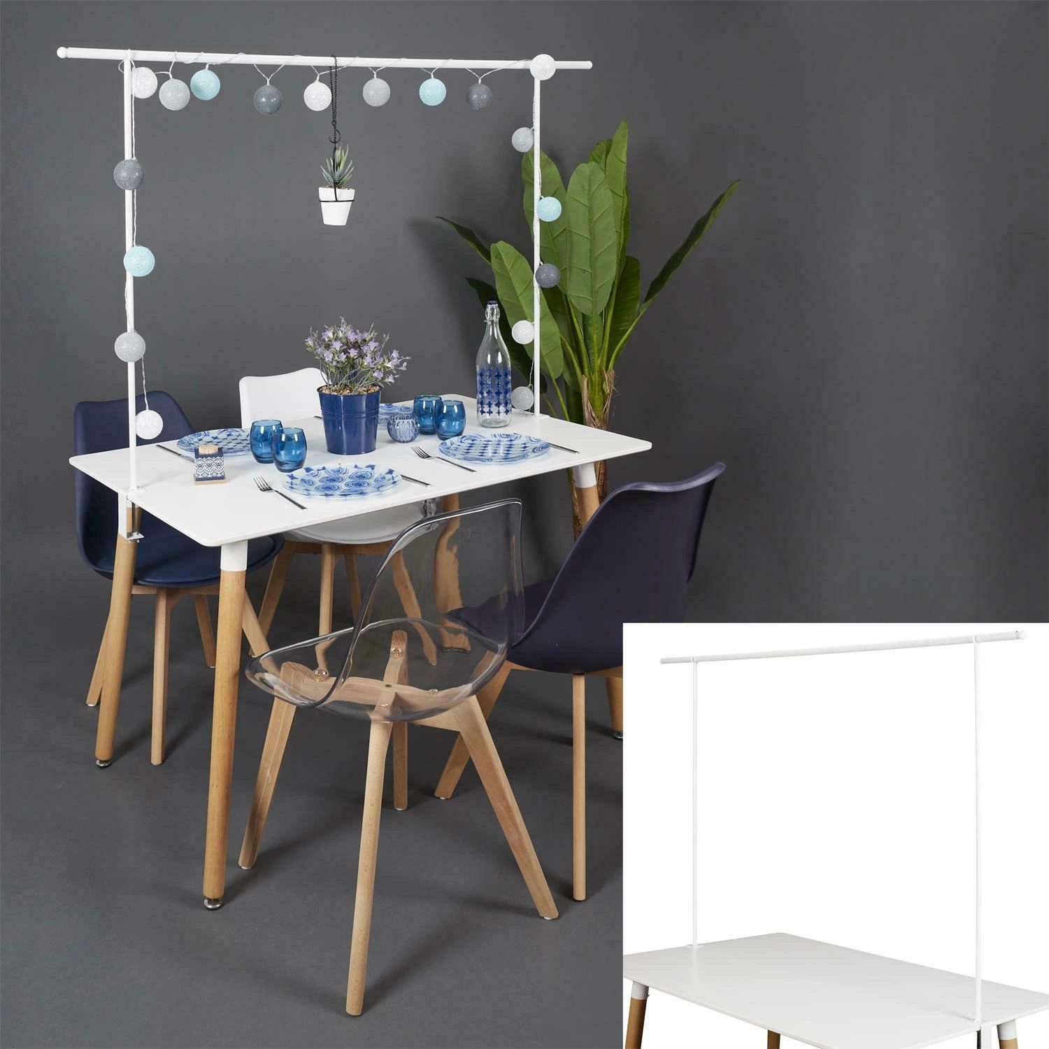 Funkcjonalny wieszak dekoracyjny, montowany do blatu stołu to dodatek, który można wykorzystać na wiele sposobów. Wykonany z metalu, w klasycznym białym kolorze z pewnością przypadnie do gustu wielbicielom pomysłowych elementów dekoracyjnych w aranżacji wnętrz. Można na nim zawiesić stylowe dekoracje bądź wykorzystać w pracowniach krawieckich. Drążek do dekoracji będzie pomocny podczas dekoracji stołu na urodziny, święta lub wieczór panieński. Możemy zawiesić na nim kolorowe lampki lub girlandy z kwiatów. Drążek rozsuwa się od 139 do 250 cm, dzięki czemu możemy dopasować go do każdego stołu.