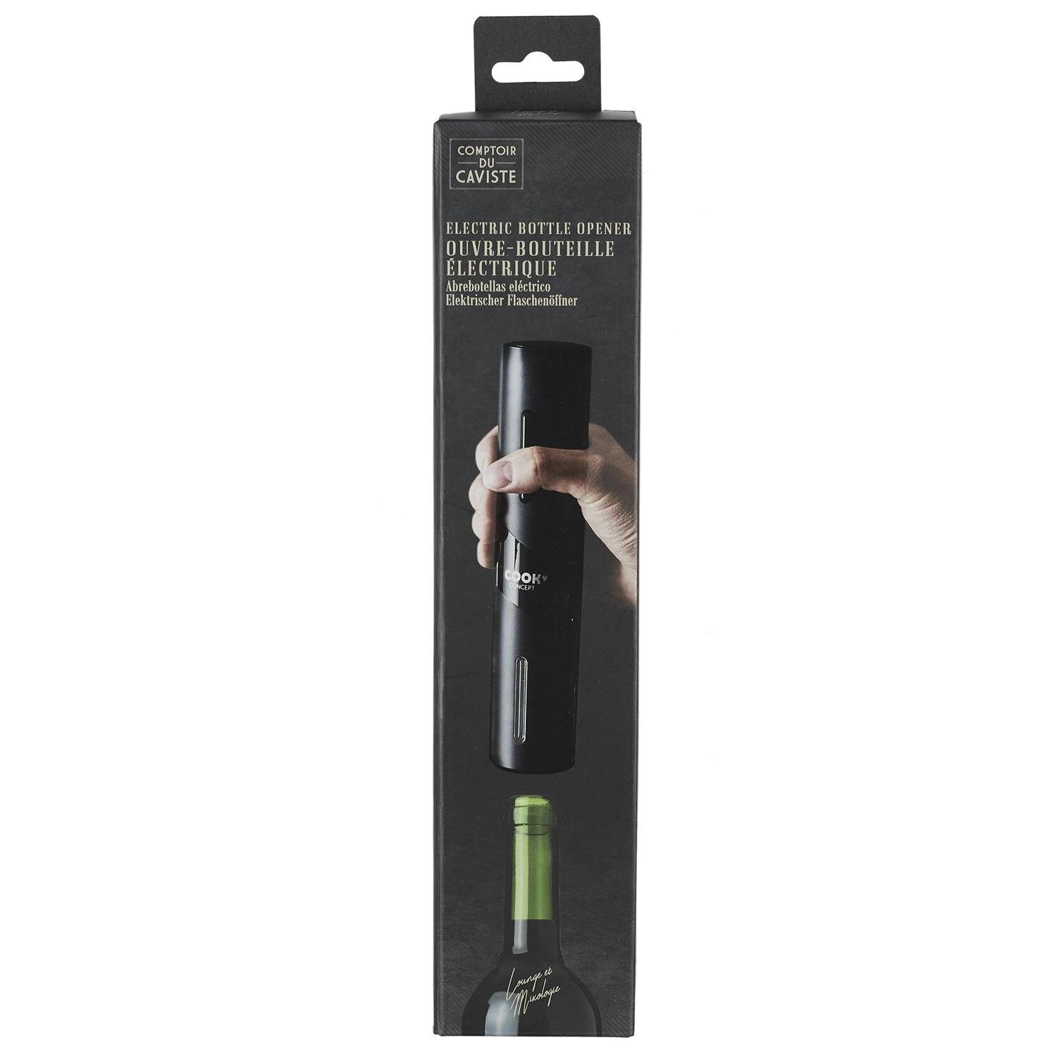 - Łatwy w obsłudze: wystarczy nacisnąć przycisk, by otworzyć butelkę