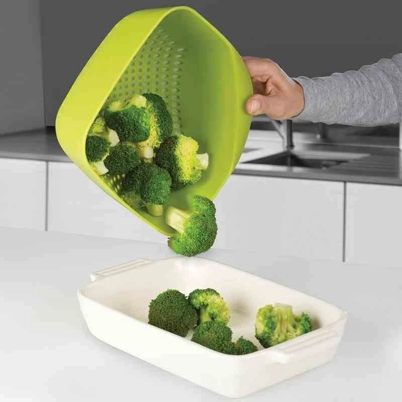 - durszlak w kolorze zielonym wykonany z wysokiej jakości, trwałego tworzywa sztucznego,