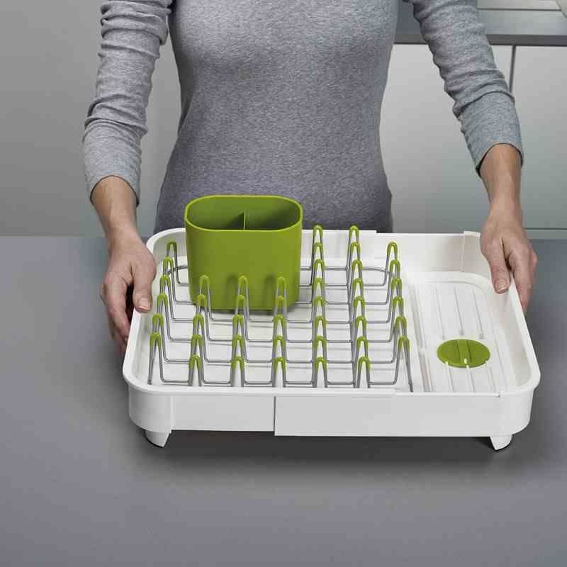 Joseph Joseph Extend to ociekacz do naczyń, który doskonale sprawdzi się w nowoczesnych, minimalistycznych wnętrzach. Stonowana kolorystyka i elegancka forma sprawiają, że suszarka na naczynia nie tylko pełni funkcję użytkową, ale także estetycznie dopełnia wystrój kuchni. Składana konstrukcja pozwala na łatwe powiększenie powierzchni suszenia w razie potrzeby, a po złożeniu ociekacz zajmuje niewiele miejsca na blacie.
