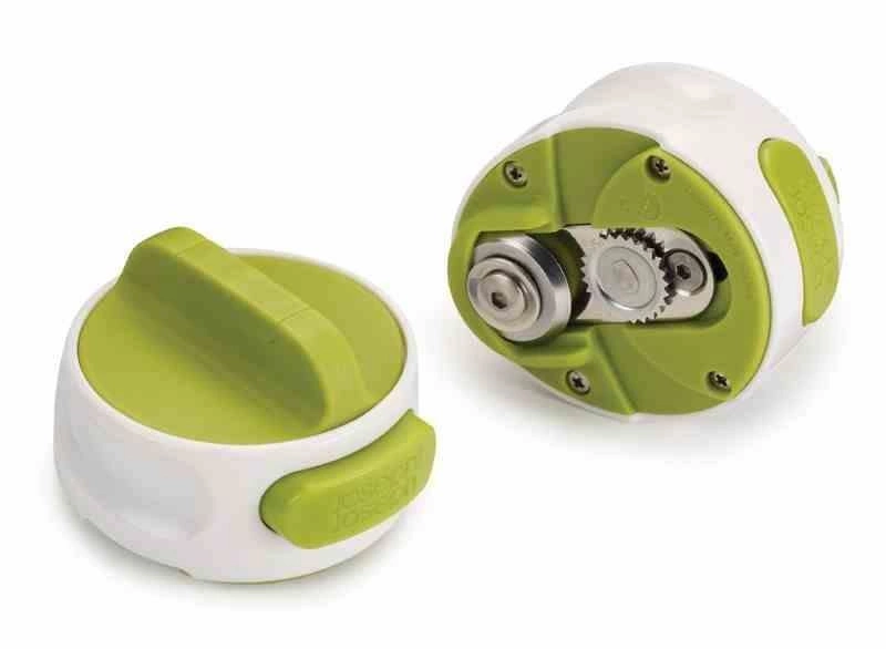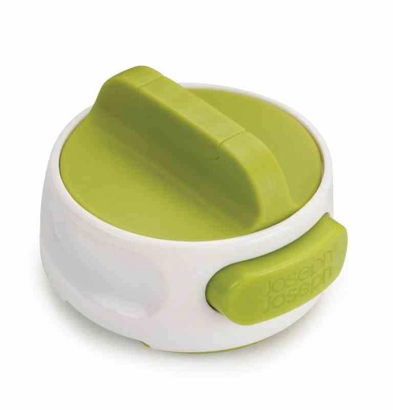 Otwieracz do puszek Can-DoKompaktowy otwieracz z białego i zielonego tworzywa sztucznego. Można nim szybko i łatwo otworzyć każdą puszkę. Posiada duże pokrętło – wystarczy go przekręcać, aby spodni nożyk otworzył puszkę. Naciśnięcie przedniego przycisku powoduje zwolnienie pokrywy. Bezpieczny – pokrywki otworzonych puszek nie mają postrzępionych krawędzi. Łatwy do przechowywania w szufladach.