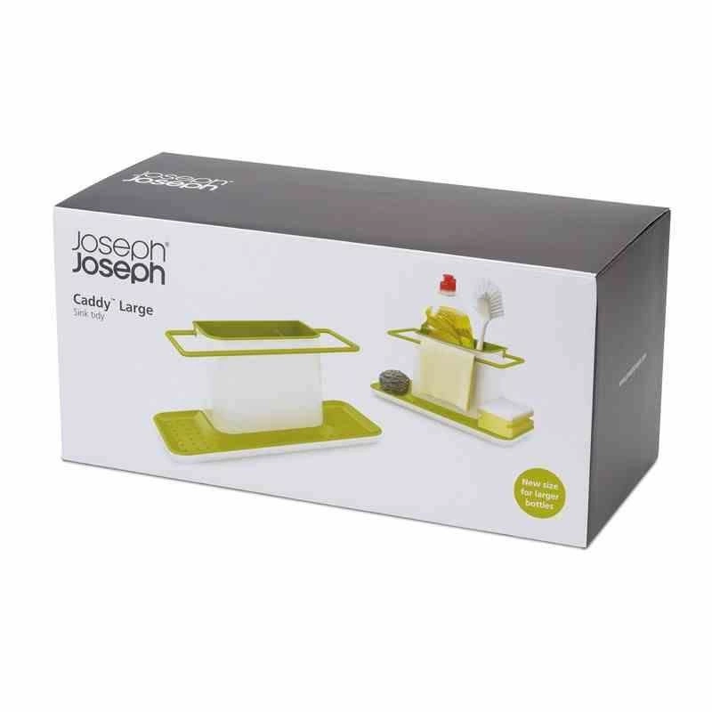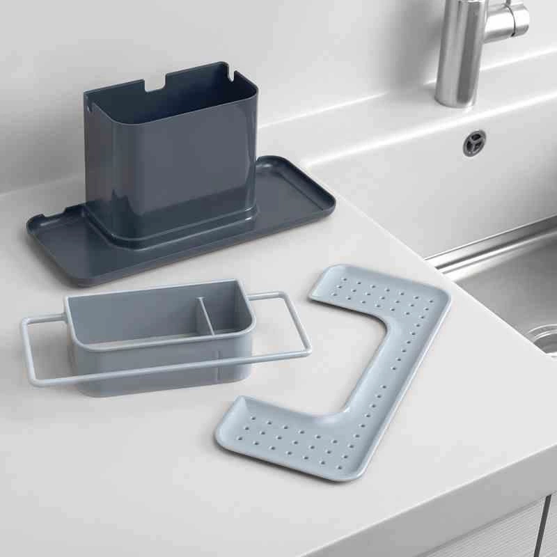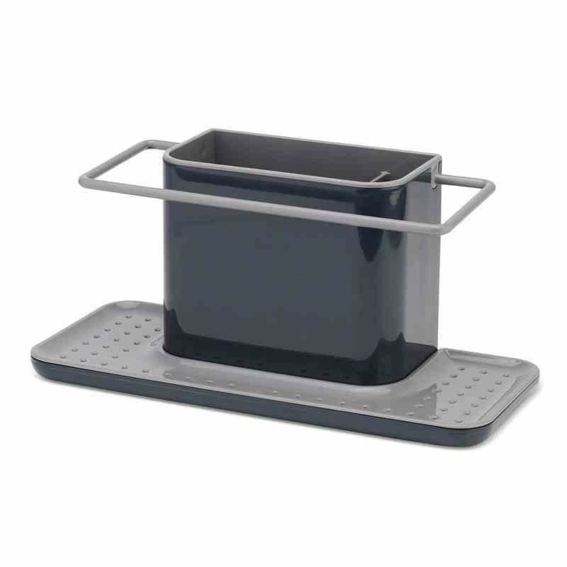 Pojemnik na akcesoria do zmywania pozwala na organizację akcesoriów do zmywania. Duży pojemnik na płyn do mycia naczyń i szczotkę. Specjalny wieszak na wilgotną ściereczkę, oraz miejsce na gąbkę z odpływem dzięki czemu gąbka schnie, a woda zbiera się w zbiorniczku pod nią. Cały pojemnik można z łatwością rozłożyć do mycia. Idealne rozwiązanie jeżeli wokół zlewu nie ma za wiele miejsca.