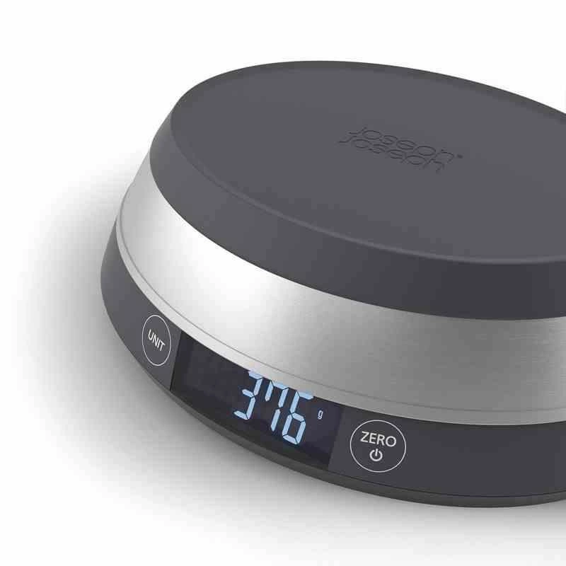 Waga składa się z dwóch części. Podstawa z wyświetlaczem LCD oraz miska, która stanowi pokrywę dla wagi jak również powierzchnie na której można ważyć produkty w torebkach czy innych opakowaniach. Po odwróceniu do miski można nasypać produkty sypkie.