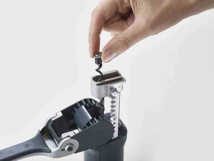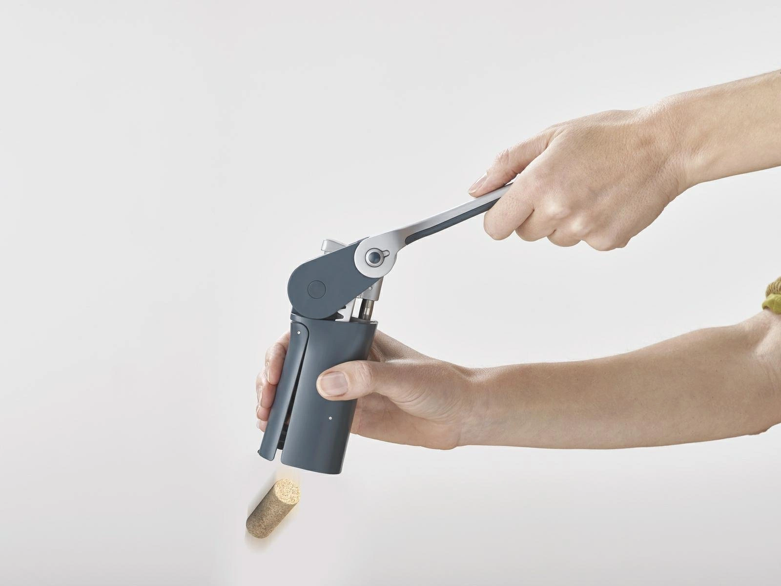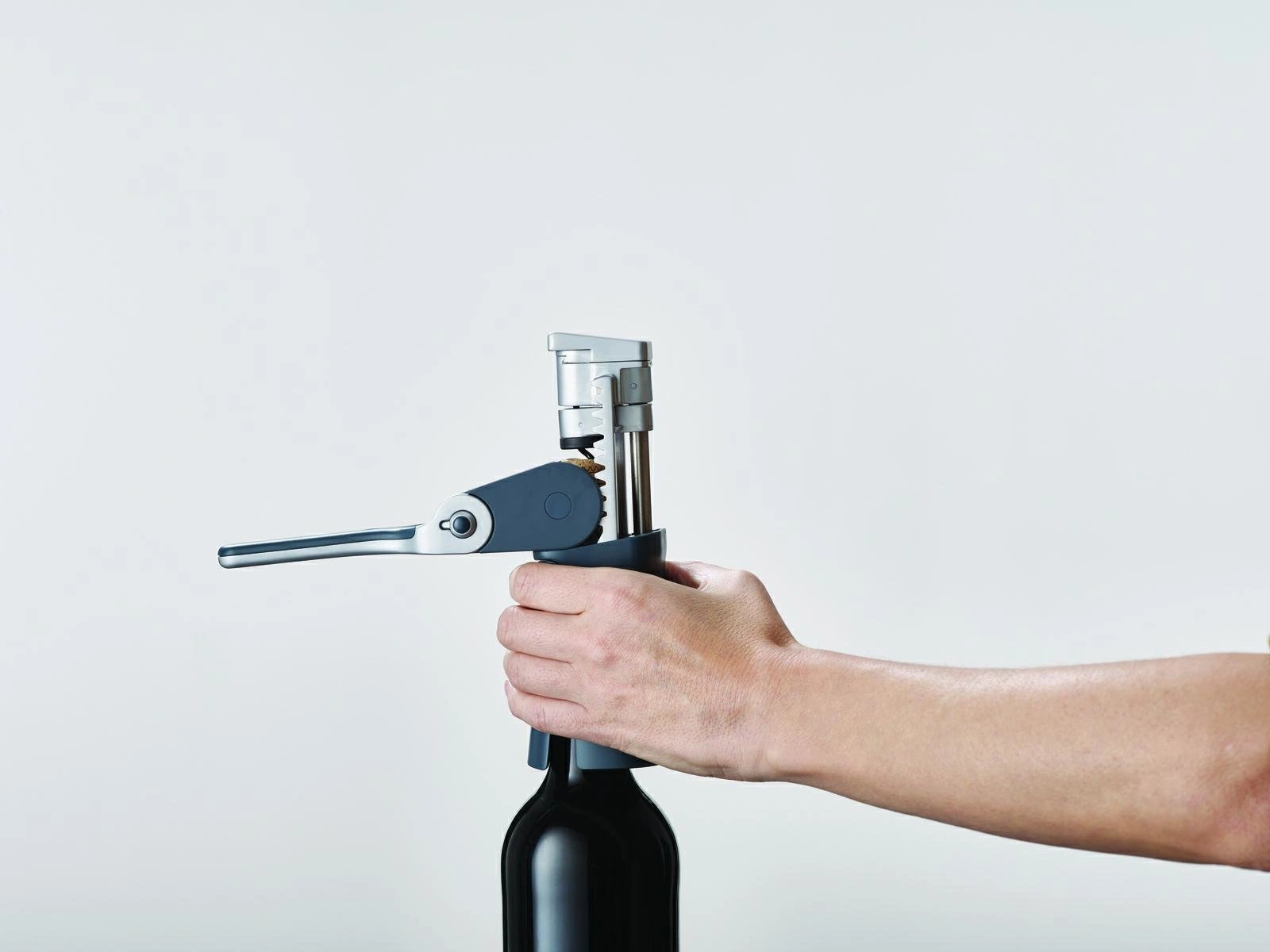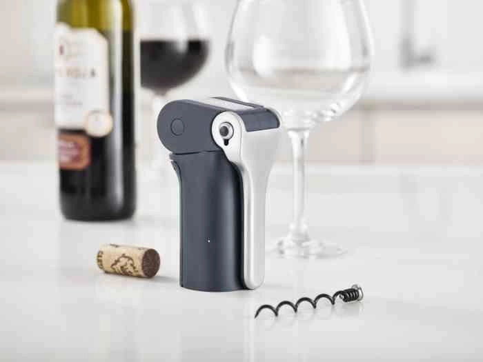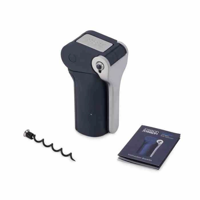 - łatwe otwieranie, niewymagające dużo siły, łatwe usuwanie korków, - wykonany z tworzywa sztucznego i stali nierdzewnej pokrytej powłoką nieprzywieralną (spirala), - kompaktowa budowa – łatwe przechowywanie, - zintegrowany nożyk do folii, - opakowany w pudełko kartonowe, - przecierać wilgotną ściereczką. Wymiary: 12.7 x 5.7 x 7 cm (wys. x szer. x gł.) Materiał: stal nierdzewna, tworzywo sztuczne Kolor: granatowoszary, srebrny Kolekcja: BarWise