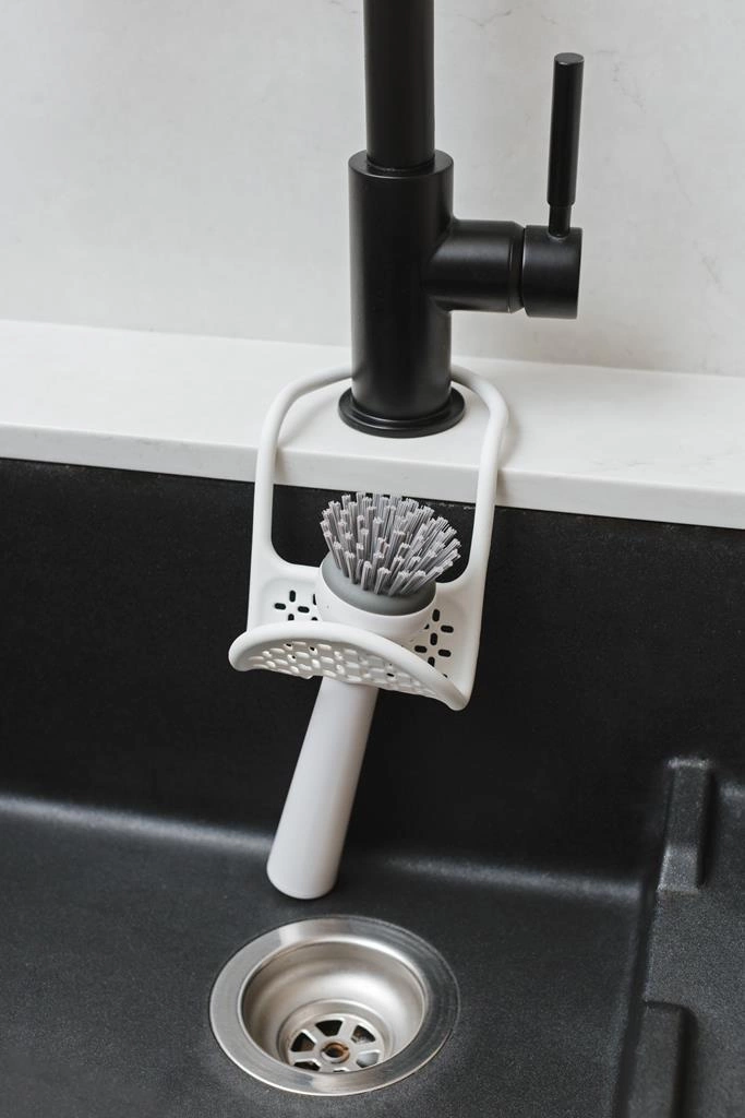 Praktyczne dodatki w kuchni to gwarancja wygodnego użytkowania. Jednym z nich jest koszyk do zlewu Sling wykonany z trwałego, a jednocześnie elastycznego tworzywa sztucznego, które jest przyjemne w dotyku. Zawieszony na kuchennym kranie może posłużyć jako miejsce do przechowywania gąbki do naczyń, a dzięki otworowi znajdującemu się w dolnej części koszyka, także do przechowywania np. większych szczotek. Ażurowa powierzchnia przepuszcza spływającą wodę, a także powietrze, które zapewnia szybsze wysychanie artykułów do mycia. Koszyk do zlewu, to drobiazg, który pozwoli zadbać o higienę i zapobiegnie namnażaniu się bakterii w kuchni, ponieważ odpowiednio przechowywane gąbki to podstawa. Koszyk do zlewu Sling dostępny jest w dwóch podstawowych kolorach — białym i czarnym co pozwoli Ci dobrać odpowiedni model do swojej kuchni. Elastyczna rączka z możliwością zmiany jej kształtu dostosuje się także do każdego rodzaju zlewu i kranu.