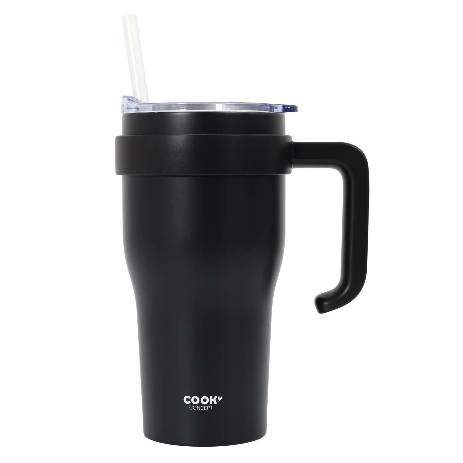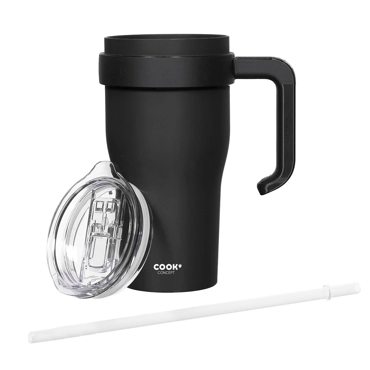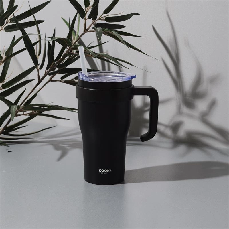 Kubek termiczny z uchwytem i słomką Miami 600ml czarny - praktyczny i stylowy