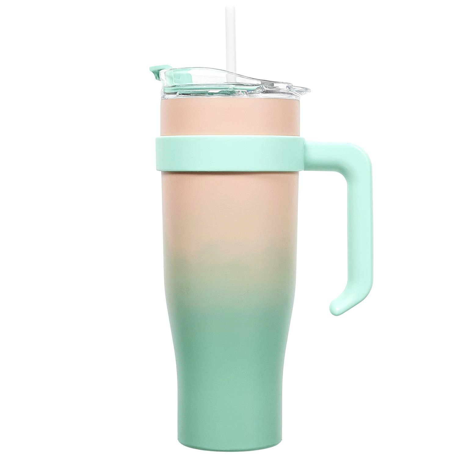 Poręczny kubek termiczny w kolorach pomarańczowym i zielonym