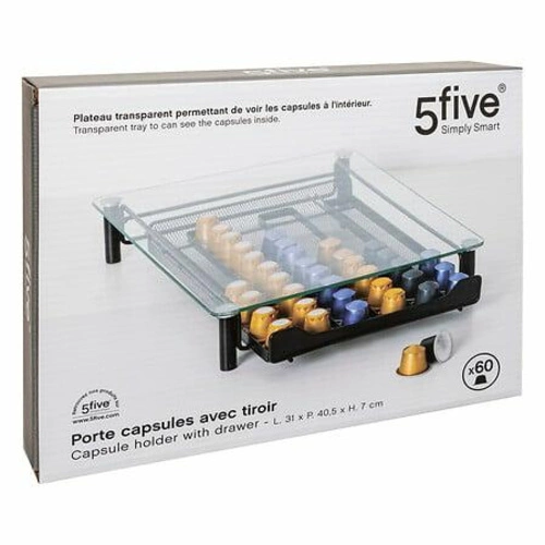 Marka 5five simply smart jest synonimem praktycznych i funkcjonalnych rozwiązań do domu. Ten organizer na kapsułki nie jest wyjątkiem. Jego kompaktowe wymiary (31 cm szerokości i 40,5 cm głębokości) sprawiają, że idealnie wpasuje się nawet w niewielką kuchnię. Wyciągana szufladka ułatwia zarówno wybór ulubionej kawy, jak i uzupełnianie organizera.
