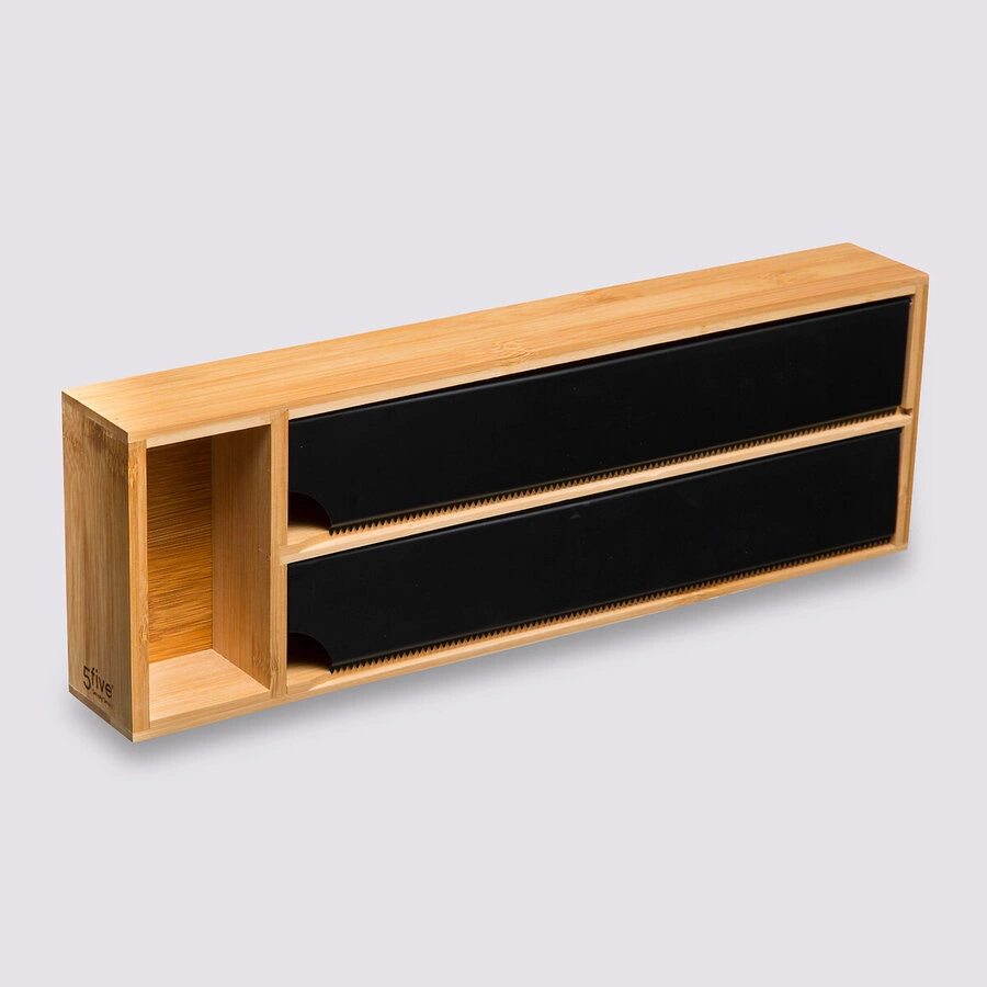 Dzięki dwóm komorom, możesz łatwo umieścić w nich rolki i porcjować papier oraz folię do pieczenia, zapewniając sobie wygodę i precyzję podczas przygotowywania potraw. Ostrza ze stali są wyjątkowo ostre i trwałe, co sprawia, że cięcie jest szybkie i precyzyjne. Organizer doskonale sprawdzi się w każdej kuchni, niezależnie od jej stylu. Doda elegancji i porządku do Twojej przestrzeni, a jednocześnie zapewni łatwy dostęp do niezbędnych produktów. Możesz go umieścić na blacie kuchennym lub w szufladzie – wszystko zależy od Twoich preferencji i układu kuchni. Uporządkuj swoją kuchnię w stylowy sposób. Nie tylko będziesz mieć wszystko pod ręką, ale także dodasz swojej przestrzeni wyjątkowy akcent. Przygotowywanie potraw jeszcze nigdy nie było tak proste i przyjemne!