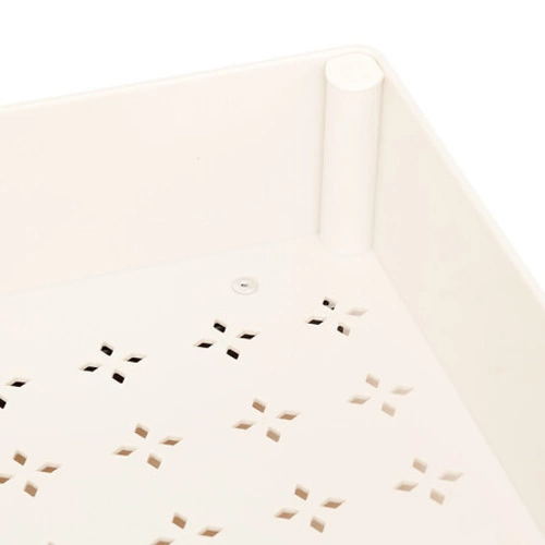 Beżowy kolor organizera to nie tylko estetyka, ale także praktyczność. Jasna barwa nie przyciąga kurzu i łatwo ją utrzymać w czystości. Organizer świetnie nadaje się do codziennego przechowywania produktów, które chcesz mieć zawsze pod ręką – od przypraw po drobne akcesoria kuchenne, takie jak miarki, otwieracze czy nożyczki. To nieoceniona pomoc podczas gotowania oraz sprzątania po posiłkach.