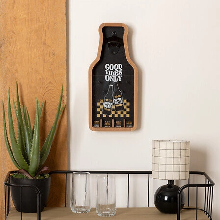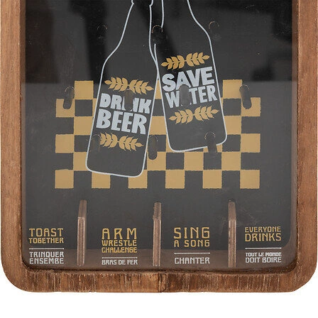 Otwieracz do butelek Loteria o wysokości 39 cm to nie tylko praktyczny, ale także zabawny dodatek, który z pewnością urozmaici każdą imprezę. Wykonany z drewna i w czarnym kolorze, otwieracz ten idealnie nadaje się na męskie wieczory, spotkania z przyjaciółmi czy grilla. Montowany na ścianie, umożliwia łatwe otwieranie butelek kapslowanych za pomocą wbudowanej części u góry.