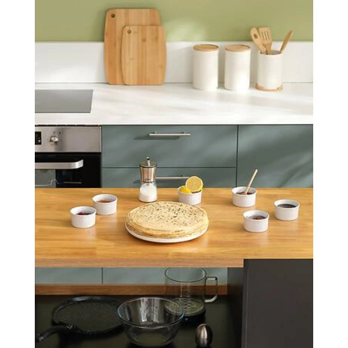 - Duża powierzchnia smażenia (28 cm) – idealna do naleśników, omletów i placków