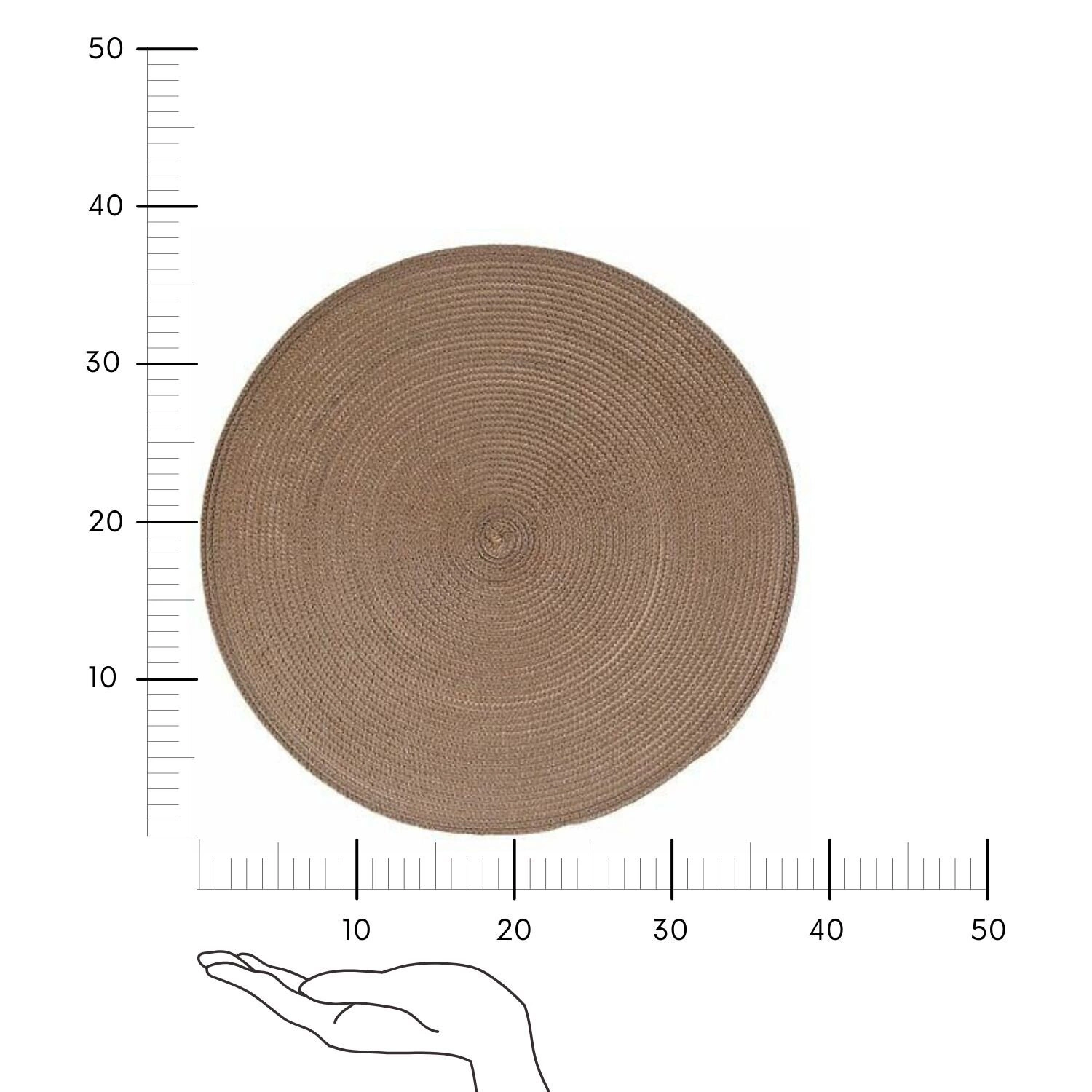 Podkładka o średnicy 38 cm beżowym odcieniu to elegancki dodatek, który idealnie sprawdzi się w każdym wnętrzu. Wykonana z polipropylenu, łączy w sobie estetykę z funkcjonalnością, wprowadzając do Twojego domu ciepły i przytulny klimat. Jej subtelny beżowy kolor doskonale komponuje się z różnorodnymi stylami dekoracyjnymi, od nowoczesnych po klasyczne, co sprawia, że jest niezwykle uniwersalnym elementem wystroju.