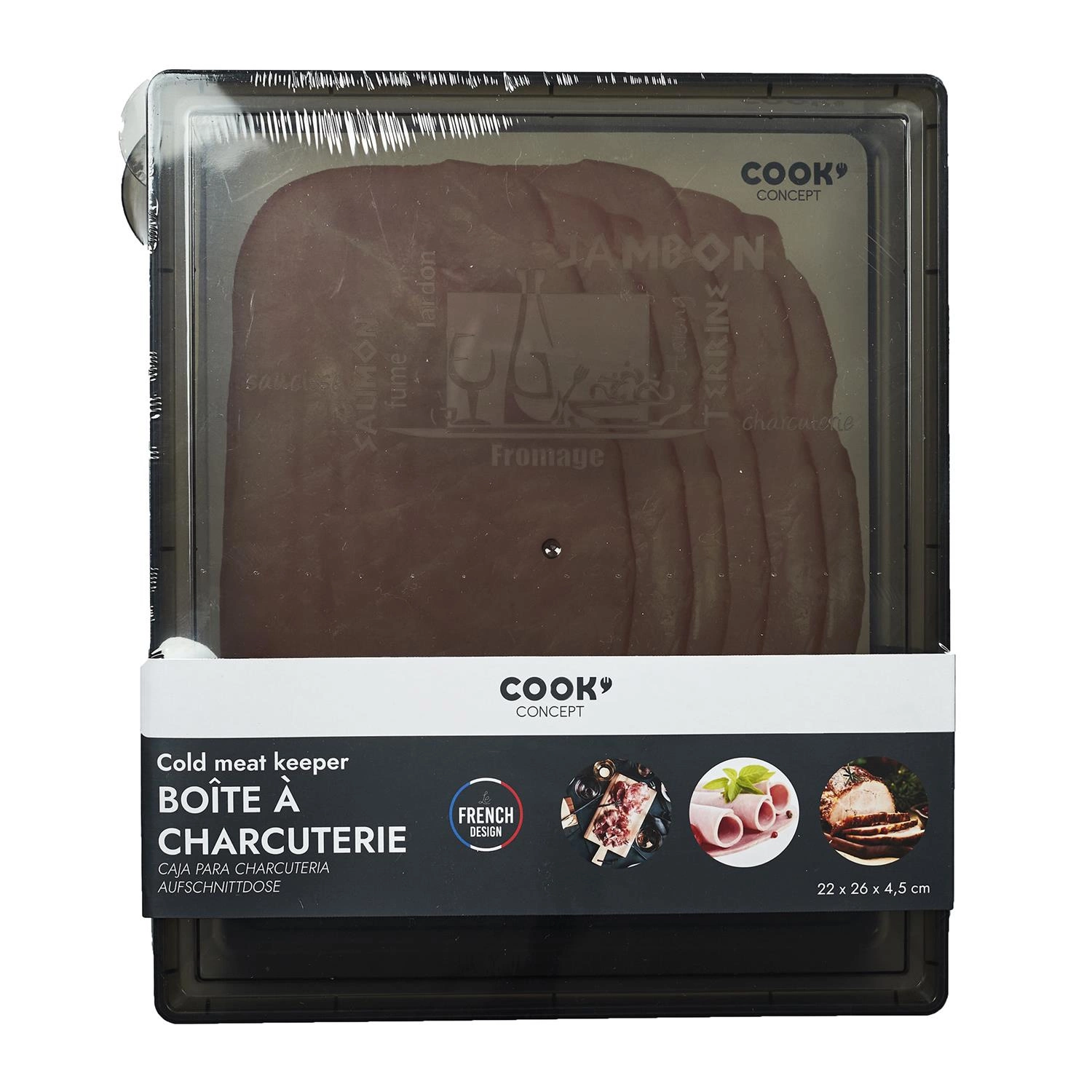 - Pudełko do przechowywania w lodówce Intesi ma wymiary 26 cm x 22 cm x 4,4 cm, co pozwala na przechowywanie pokrojonych wędlin, serów czy owoców morza.