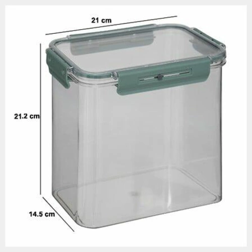 Pudełko hermetyczne Neo o pojemności 4 litrów to idealne rozwiązanie do przechowywania żywności i przypraw. Dzięki prostej, zielonej estetyce i kompaktowym wymiarom (21 cm długości, 14,5 cm szerokości, 21,2 cm wysokości), doskonale sprawdzi się w każdej kuchni, pozwalając na wygodne organizowanie przestrzeni. Możliwość ustawiania pojemników jeden na drugim pozwala zaoszczędzić miejsce w szafkach czy lodówce, czyniąc to pudełko niezwykle funkcjonalnym dodatkiem do codziennego użytku.