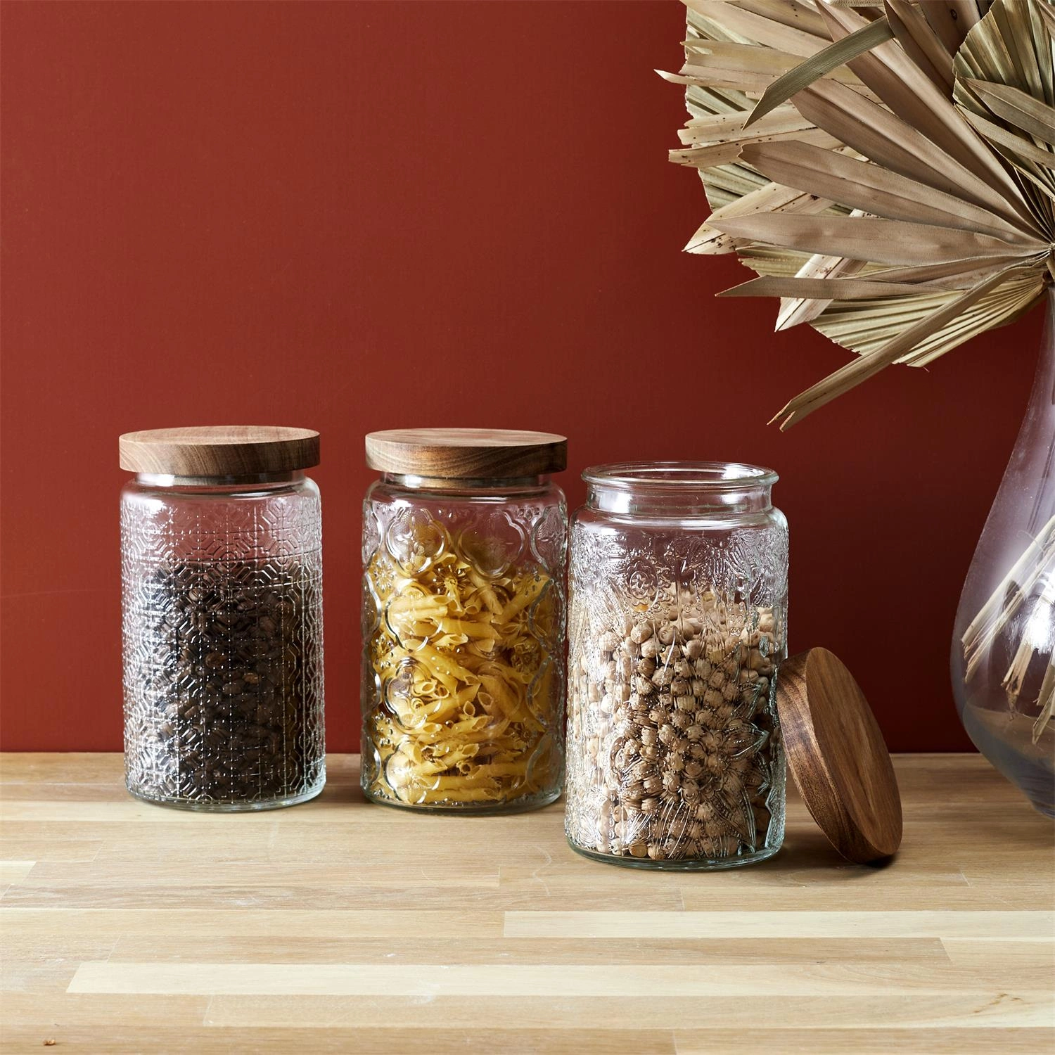Pokrywka z naturalnego drewna akacjowego nie tylko wzbogaca słoik o estetyczny akcent, ale również zapewnia szczelność, co jest kluczowe dla dłuższego utrzymania świeżości przechowywanych artykułów. Silikonowa uszczelka w pokrywce skutecznie chroni zawartość przed wilgocią i powietrzem, co przyczynia się do dłuższej trwałości i zachowania aromatu produktów. Dzięki solidnym materiałom i precyzyjnemu wykonaniu, słoik Cisele stanowi praktyczny i stylowy dodatek do każdej kuchni.