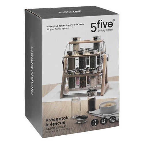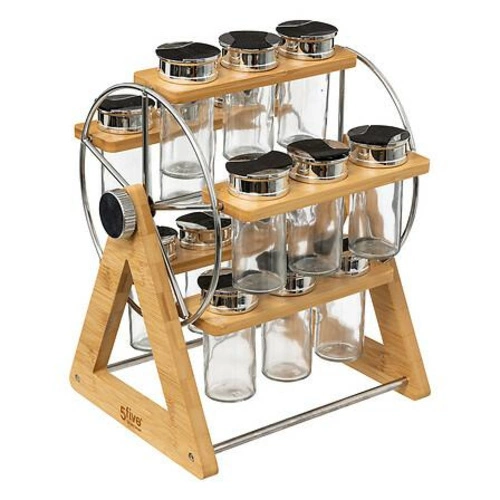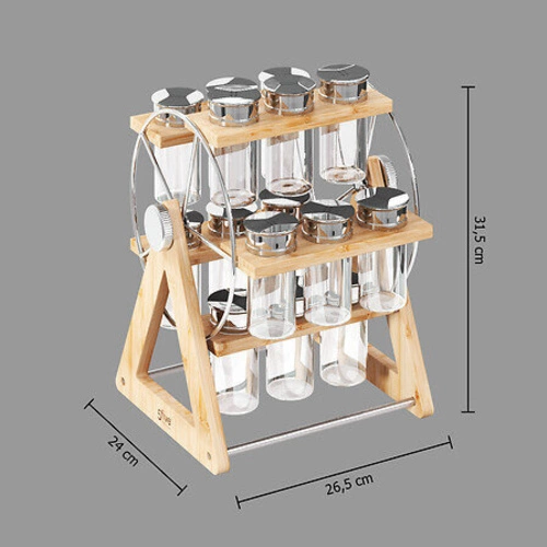 Obrotowy Stojak na przyprawy Bambou z 15 szklanymi słoikami