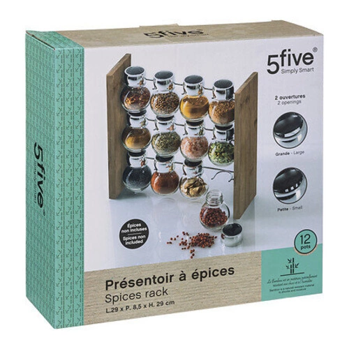 - Wyposażony w 12 szklanych słoiczków na przyprawy.