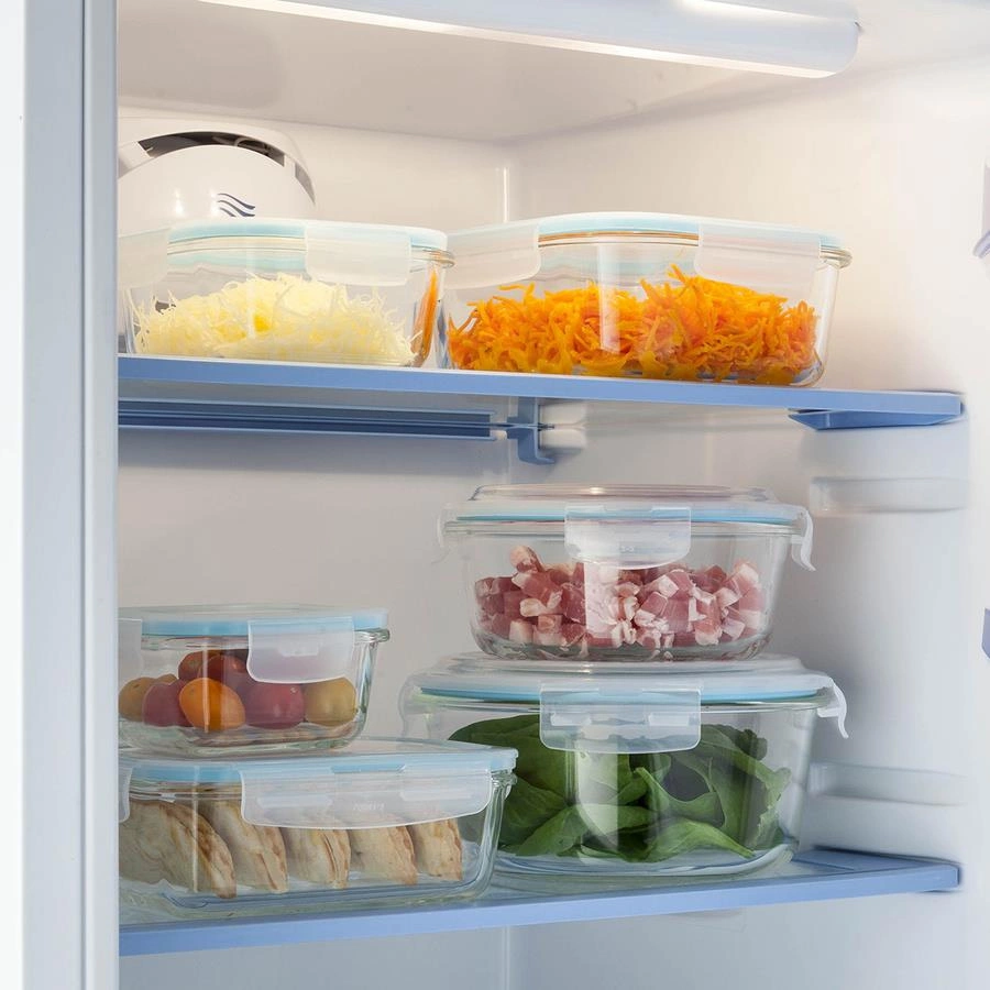 Wykonany ze szkła, pojemnik utrzymuje nienaruszony wygląd zawartości, bez zmiany koloru pod wpływem barwnych soków czy pomidorowych sosów. Pokrywka pojemnika wykonana jest z bezpiecznego tworzywa sztucznego, które ściśle przylega do pojemnika, zapewniając szczelność i unikając przypadkowych wycieków. Jego użytkowanie jest niezwykle wygodne, gdyż jest odpowiedni do mycia w zmywarce oraz do podgrzewania w mikrofalówce i piekarniku (z wyjątkiem samej pokrywki). Dodatkowo, pojemnik można bezpiecznie umieszczać w zamrażarce, co ułatwia przechowywanie dań na później. Jego zalety to także ekologiczny charakter, ponieważ nie zawiera szkodliwego bisfenolu A i ftalanów, co sprawia, że jest to bezpieczny i zdrowy materiał kontaktu z żywnością. Dzięki systemowi "klipsów" jest szczelny, co pozwala na bezpieczne przenoszenie posiłków bez ryzyka wycieku.