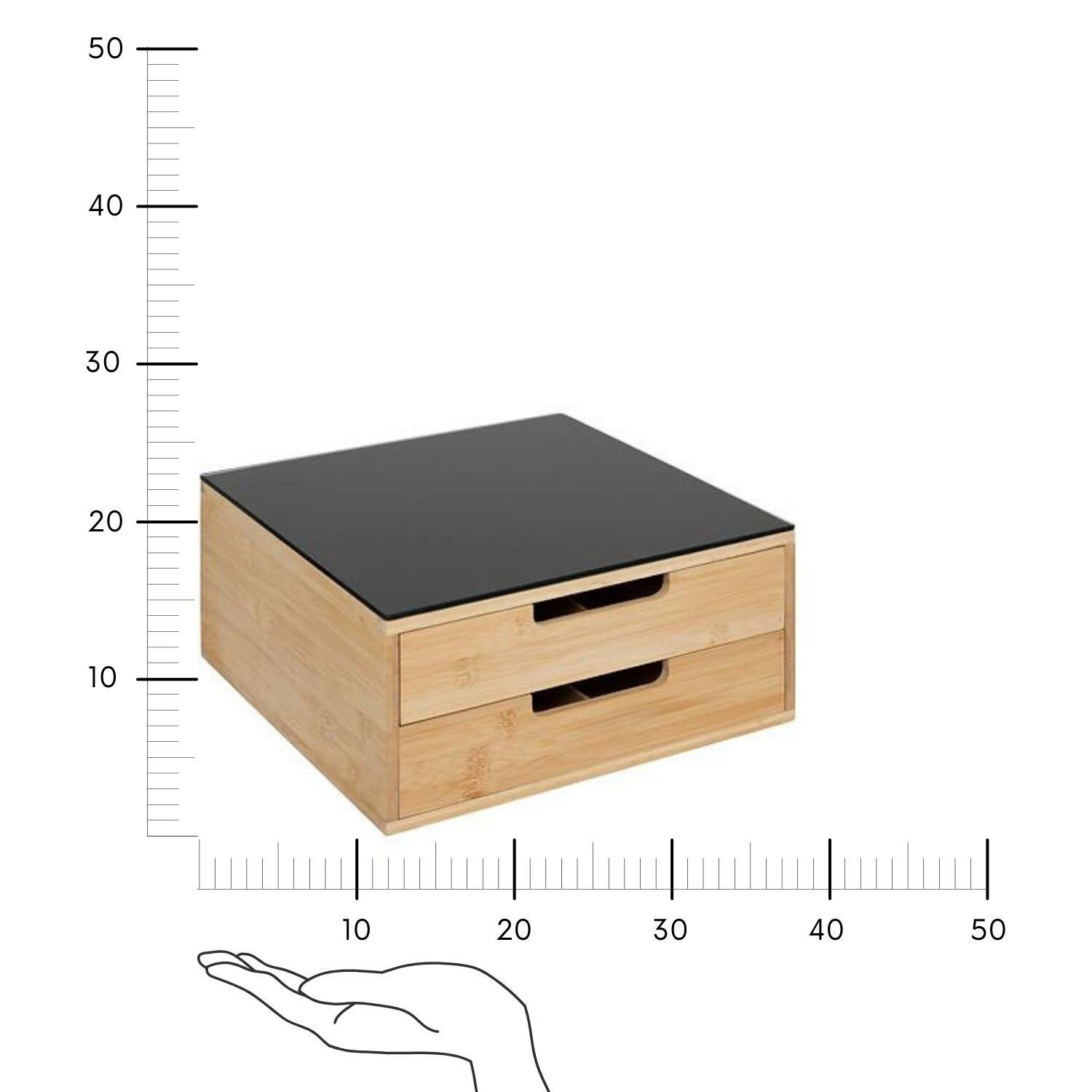 - Materiały, z których wykonana jest szufladka, to szkło hartowane i bambus - trwałe i ekologiczne.