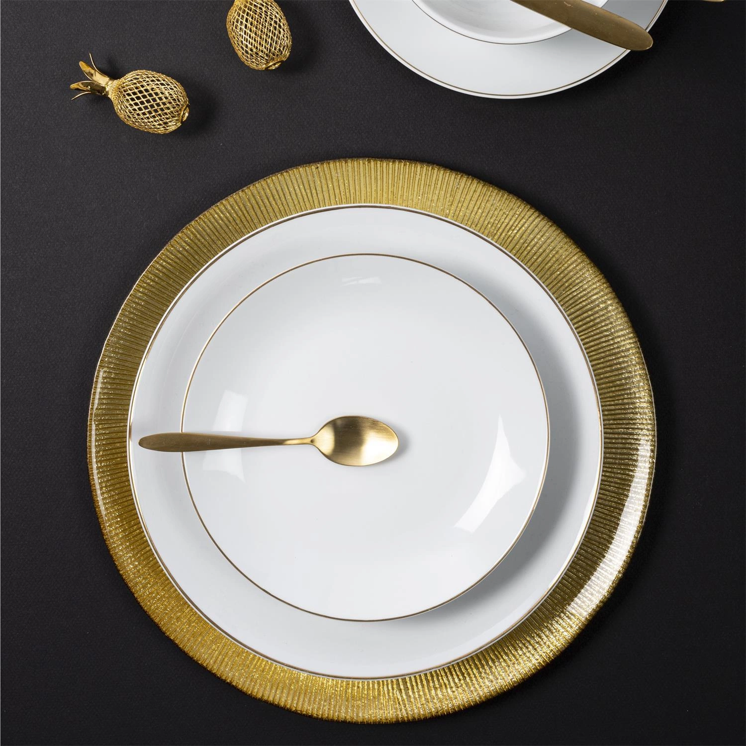 - Ozdobna złota obwódka – podkreśla wyjątkowy charakter stołu i wprowadza nutę luksusu do każdej jadalni