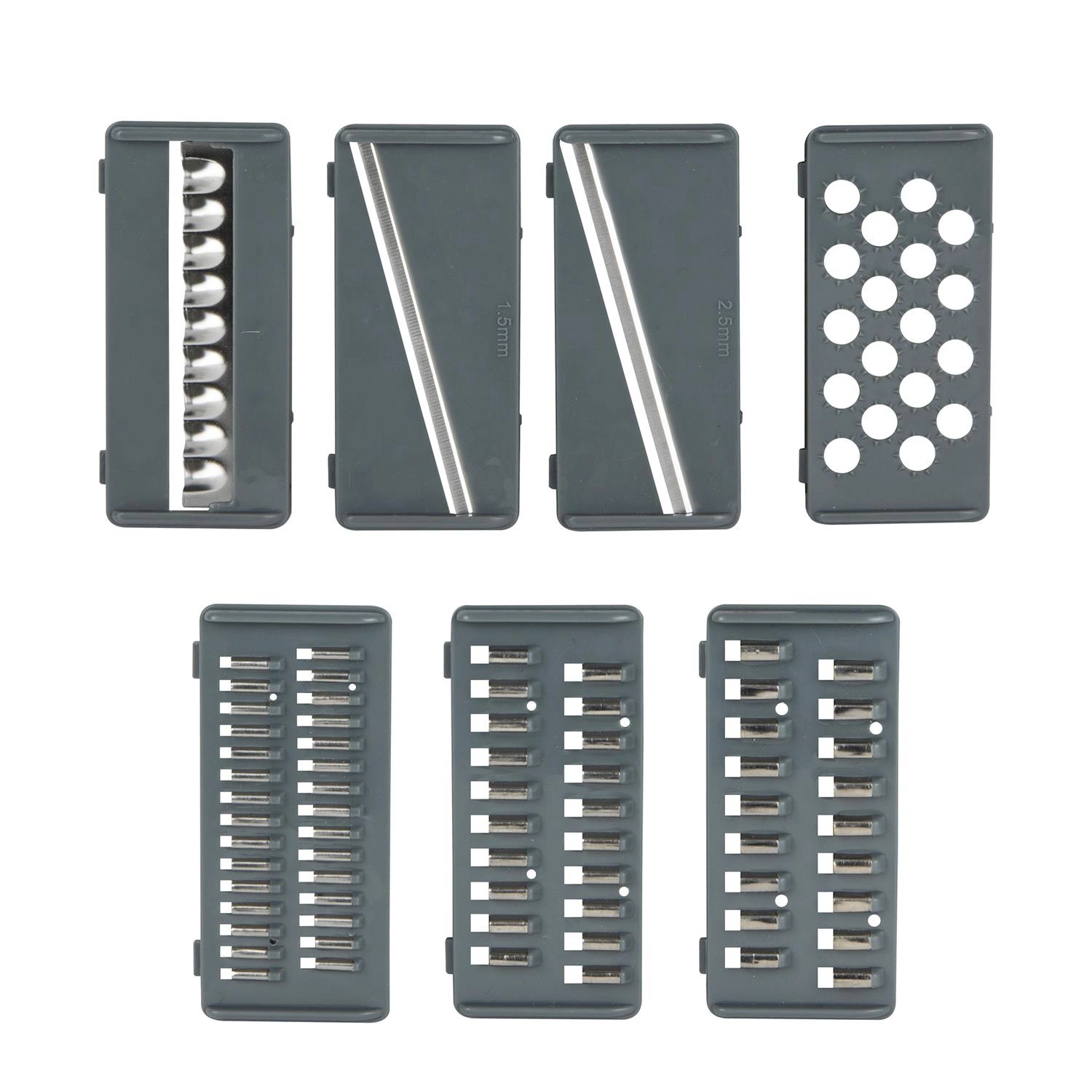 - Dzięki siedmiu różnym, wymiennym ostrzom, umożliwia tarcie warzyw na różne sposoby.
