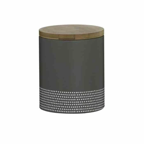 Wykonany z malowanej stali nierdzewnej o matowym wykończeniu pojemnik posiada szczelną silikonową uszczelkę, która utrzyma wszystkie Twoje składniki w idealnej świeżości. Ponadto, pojemnik posiada pokrywę wykonaną z drewna bambusowego, która zapewnia zarówno trwałą ochronę, jak i przyczynia się do odświeżenia stylowej estetyki. To, co naprawdę dopełnia ten wygląd, to motyw kropeczek zdobiący dolną część pojemnika.