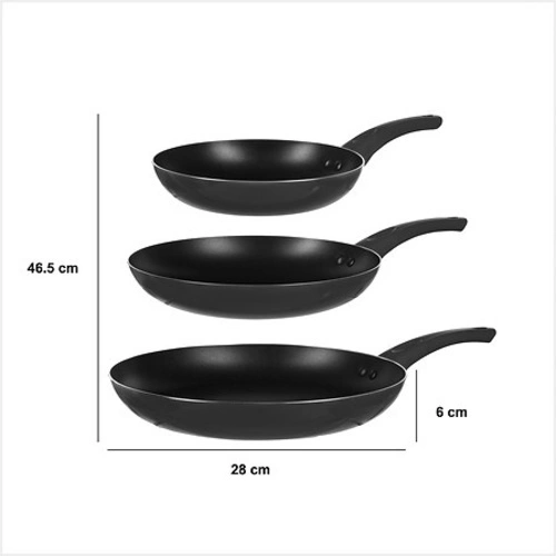 - Zestaw trzech patelni: różne rozmiary umożliwiają przygotowanie wielu potraw jednocześnie