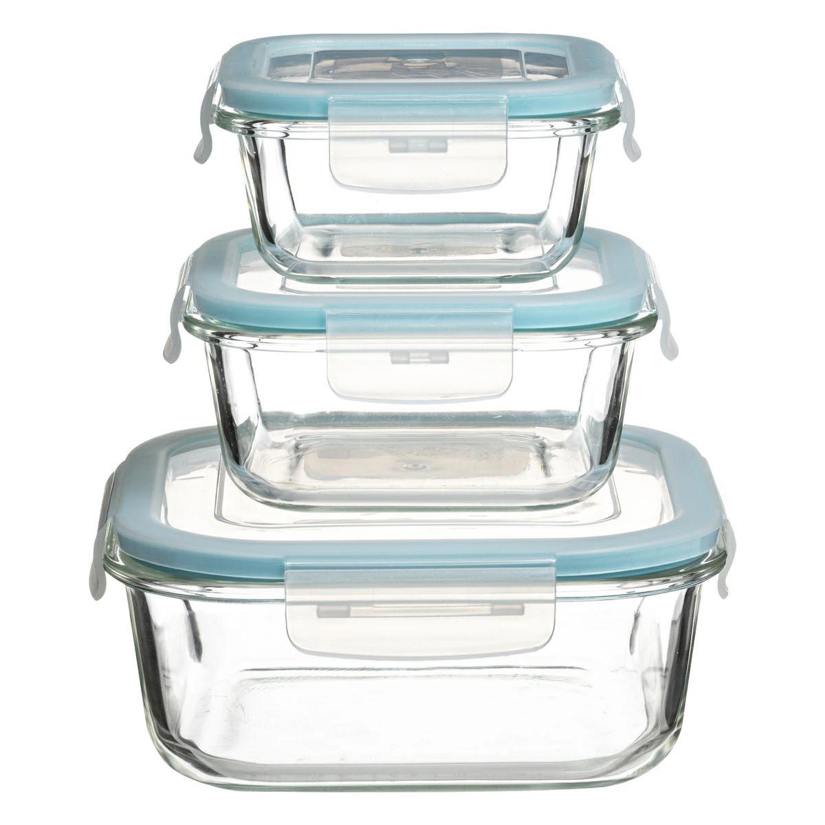 Zestaw 3 szklanych pojemników M z pokrywkami