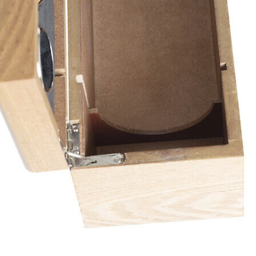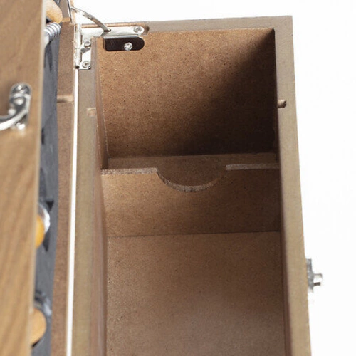 - Skrzynka wykonana z wytrzymałej płyty MDF w okleinie imitującej drewno dębu