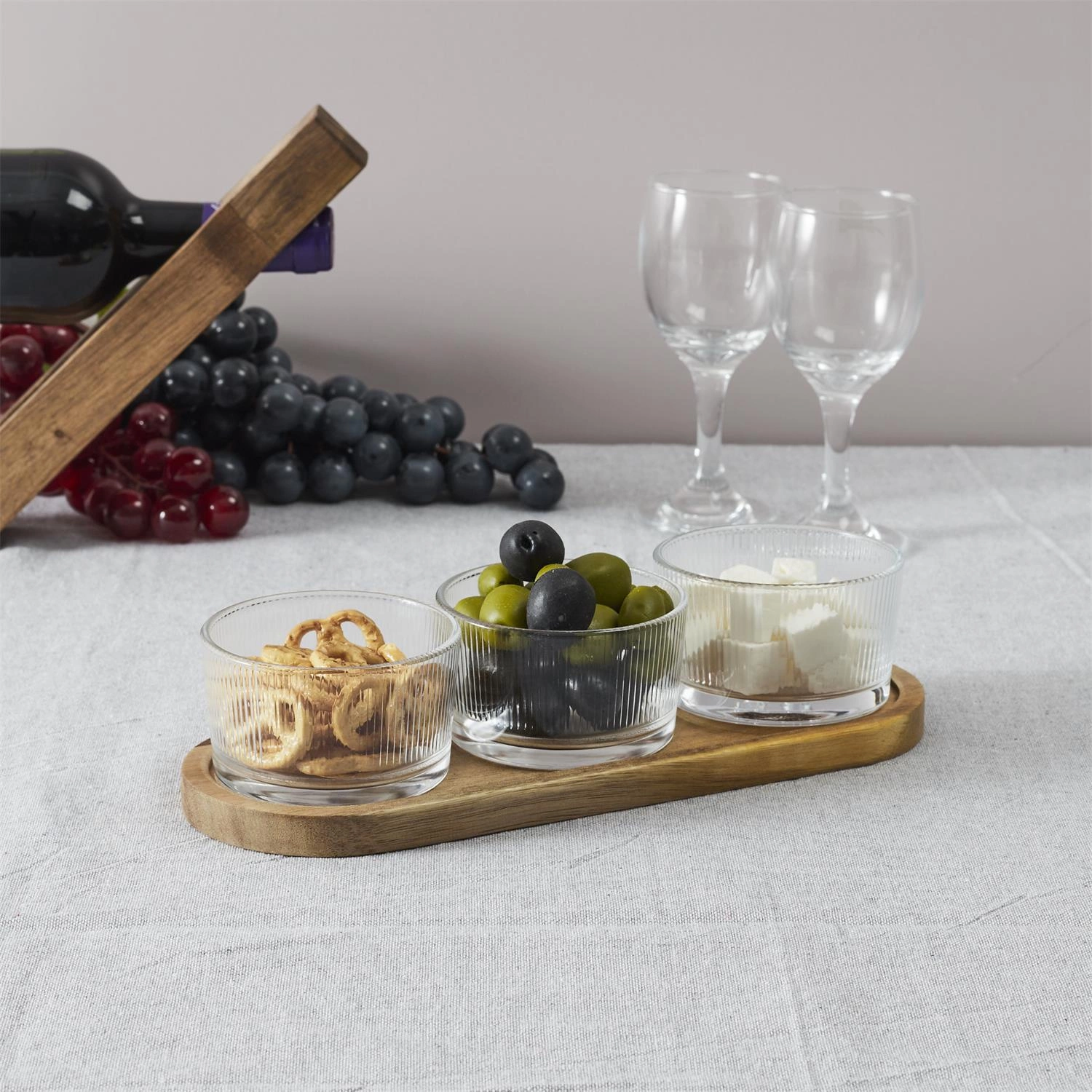 Przygotuj się na spotkanie z przyjaciółmi lub rodziną w stylu, dzięki zestawowi do podawania przekąsek wykonanemu z naturalnej akacji i szkła. Ten zestaw łączy w sobie elegancję i funkcjonalność, idealnie wpasowując się w każdą kuchnię i salon. Wykonany z akacji, która jest nie tylko estetycznie atrakcyjna, ale również trwała i odporna na zarysowania. Dodatkowo, szklane elementy dodają elegancji i ułatwiają podawanie różnego rodzaju przekąsek.