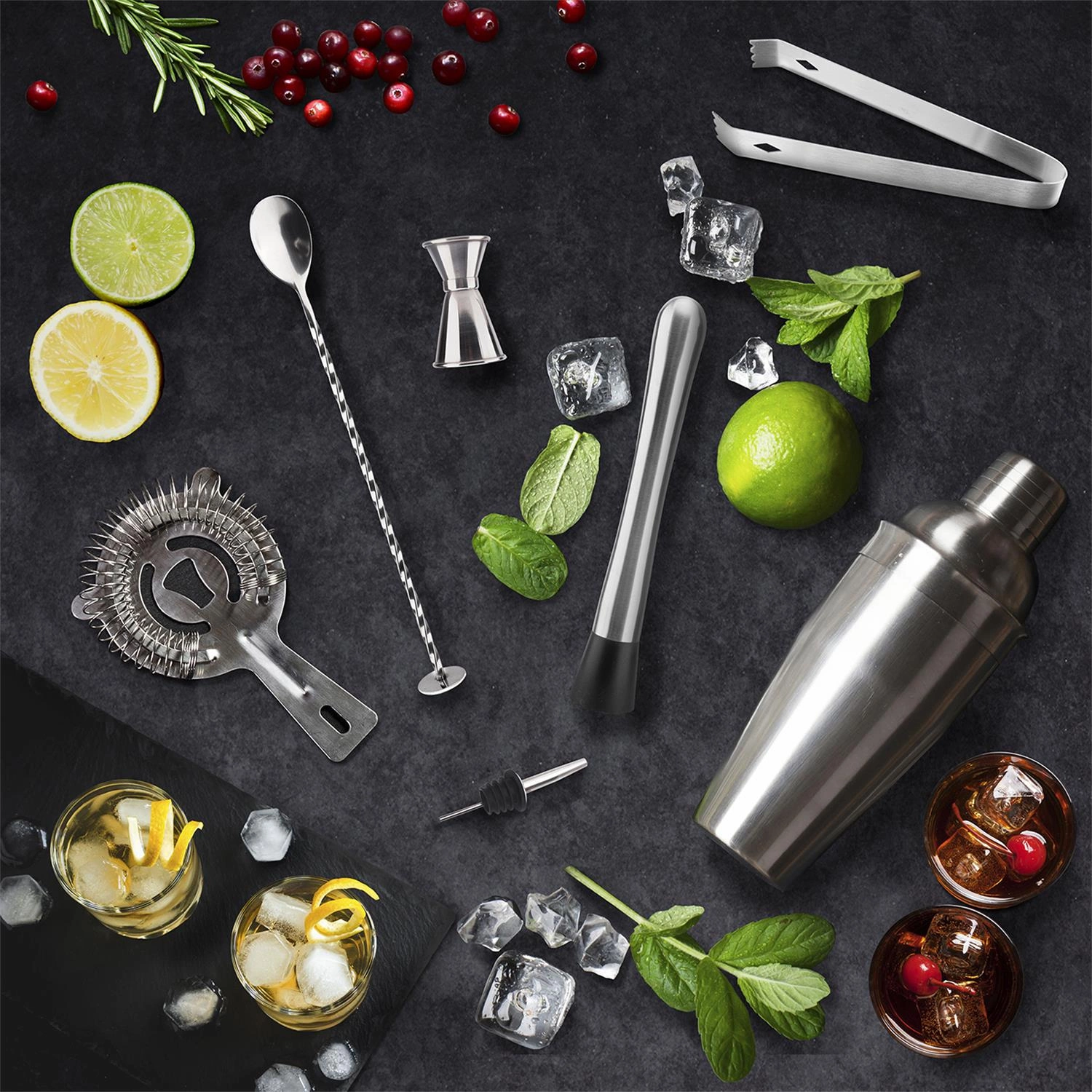 - Kompletny zestaw: 7 niezbędnych narzędzi do przygotowania koktajli.
