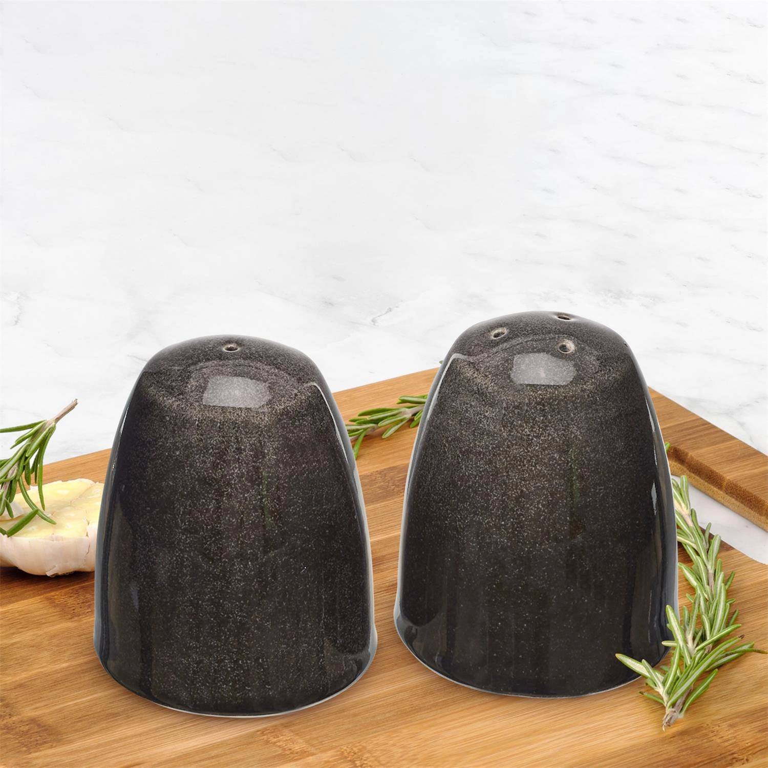 Zestaw Negro, w skład którego wchodzą ceramiczna solniczka i pieprzniczka w kolorze czarnym, to praktyczne akcesorium i stylowa dekoracja w jednym. Idealne do codziennego użytku, jak i na ważne okazje. Pięknie prezentują się na stole w jadalni lub salonie. Tworzą ciekawą kompozycję z pozostałymi elementami serii Negro. Można myć w zmywarce.