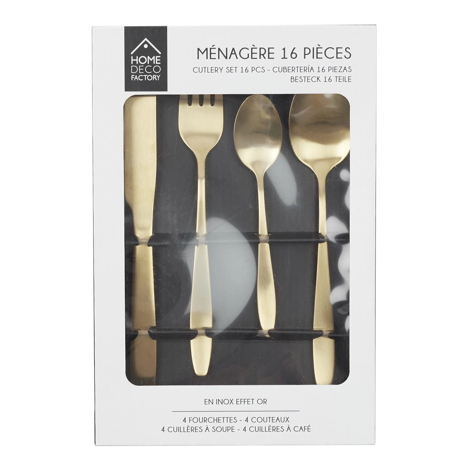 Czy lubisz zaskakiwać gości przy stole? Ten piękny zestaw to idealna alternatywa dla klasycznych sztućców, które można spotkać wśród pospolitych zastaw stołowych. Dodaj swojemu posiłkowi większej klasy i daj się oczarować niebywałą precyzją wykonania Charbon. Zestaw składa się z 16 złotych sztućców ze stali nierdzewnej. Prosty, uniwersalny kształt w połączeniu z zaskakującym kolorem tworzą efektowną kombinację do każdej jadalni.