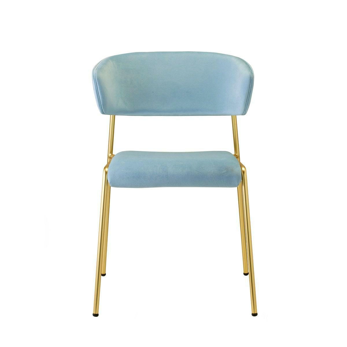 - Elegancki design – połączenie błękitnej tapicerki i złotych nóg pasuje do wielu stylów wnętrz.