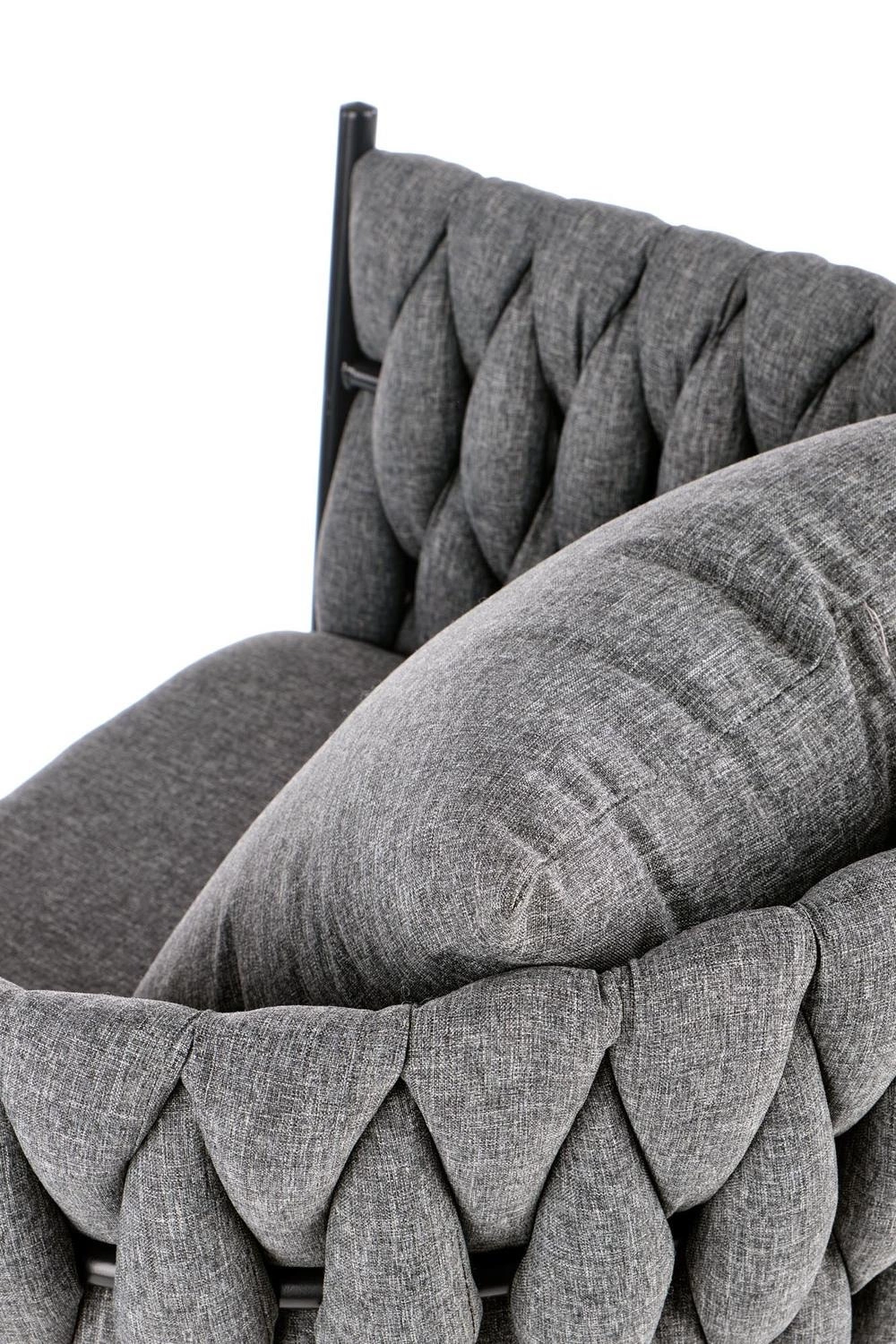 Fotel Tresse posiada metalową podstawę w kolorze czarnym, oraz plecione podłokietniki z tkaniny welwetowej, które dodają mu wyrafinowanego charakteru. Siedzisko fotela Modin wykonane jest z pięknej welwetowej tkaniny, która jest zarówno miękka w dotyku, jak i nadaje fotelowi wyjątkowego blasku. Welwet to materiał, który jest niezwykle modny i dodaje wnętrzu wyrazistości i wyjątkowego charakteru. Wykonany z trwałych materiałów, fotel Tresse gwarantuje długotrwałą wytrzymałość i trwałość. Jego solidna konstrukcja zapewnia nie tylko estetyczny wygląd, ale także wygodę i komfort podczas długich godzin relaksu.