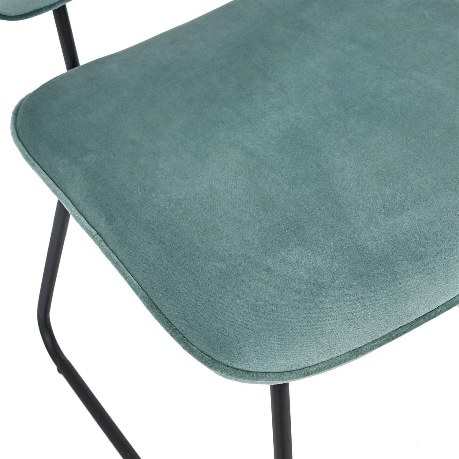 Krzesła tapicerowane na metalowych płozach to idealne rozwiązanie do nowoczesnego wnętrza. A zwłaszcza krzesło Adele, które swoją designerską formą odmieni każdy salon, biuro czy młodzieżowy pokój. Jest to także idealny mebel do domowej jadalni. Wykorzystane w produkcji materiały pozwalają na uniwersalne zastosowanie i gwarantują świetny wygląd na lata. Podstawę stanowi metalowa konstrukcja malowana proszkowo na czarno. Dwie płozy unoszą miękkie obite pianką tapicerowane siedzisko oraz oddzielne oparcie, które także połączone jest metalową ramą widoczną z tyłu oparcia. Matowa czerń wraz z welwetową tkaniną oraz poziome przeszycie na oparciu sprawia, że krzesło Adele jest niezwykle piękne i nowoczesne.