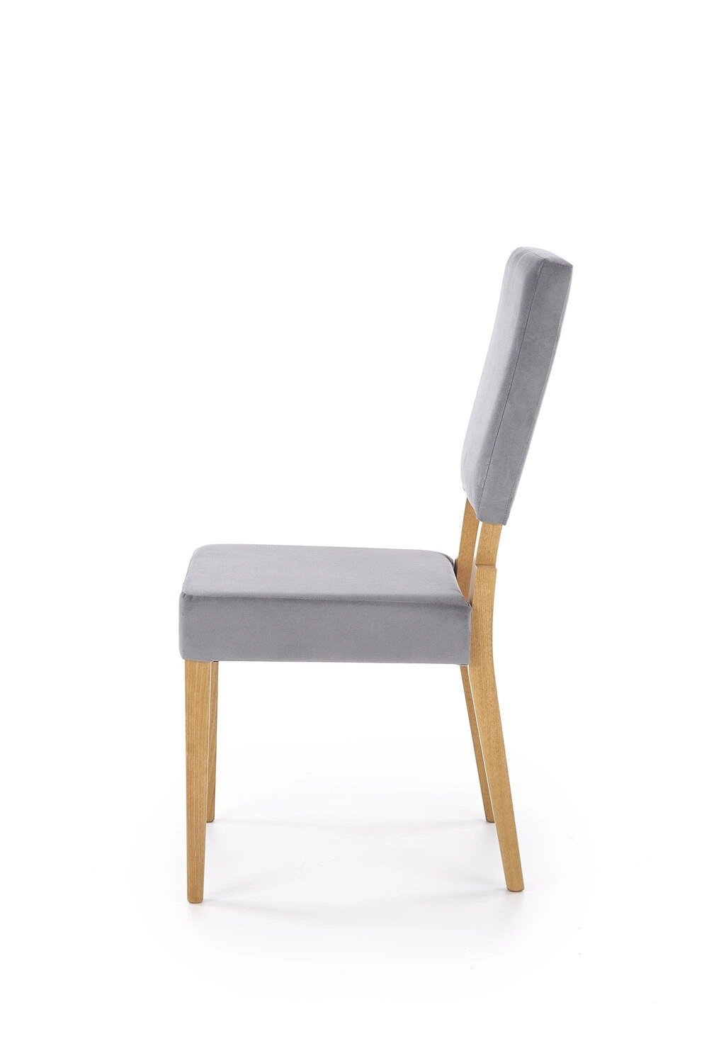 Adrien - elegancja i komfort w klasycznym stylu Adrien to krzesło o wyraźnie klasycznym stylu, które zdobi różnorodne przestrzenie. Jego tapicerka z przyjemnej w dotyku tkaniny welurowej w eleganckim odcieniu szarości dodaje mu subtelnego uroku. Dwie opcje kolorystyczne, różniące się kolorem podstawy, umożliwiają dopasowanie mebla do indywidualnych preferencji i charakteru wnętrza. Podstawa krzesła wykonana z solidnego drewna gwarantuje nie tylko estetykę, ale także trwałość mebla. Adrien doskonale komponuje się w różnych pomieszczeniach, od eleganckiej jadalni po przytulny salon czy nowoczesny pokój młodzieżowy. Krzesło nie tylko zachwyca stylistyką, ale również ułatwia utrzymanie porządku w domu, dzięki łatwej w czyszczeniu powierzchni. Współgra zarówno z tradycyjnymi, jak i nowoczesnymi wnętrzami, będąc nie tylko funkcjonalnym meblem, lecz także elementem dekoracyjnym. Przygotuj się na mądry wybór! Adrien to krzesło utrzymane w klasycznym stylu, doskonałe do różnych wnętrz. Tkanina welurowa w szarym kolorze nadaje krzesłu subtelnego uroku. Wykonana z drewna podstawa zapewnia nie tylko estetykę, ale także trwałość mebla. Dostępność w dwóch opcjach kolorystycznych umożliwia dopasowanie mebla do każdego wnętrza. Praktyczność Adrien przejawia się także w łatwości utrzymania mebla w nienagannym porządku.
