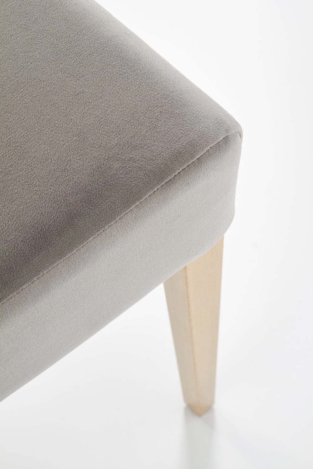 Krzesło tapicerowane jest aksamitnym materiałem, który dodaje mu wyrafinowanego charakteru. Materiał jest dostępny w różnych odcieniach, aby umożliwić dopasowanie krzesła do indywidualnego stylu. Dodatkowo każde krzesło wyposażone jest w uchwyt, ułatwiający przenoszenie mebla. Szlachetne wykończenie materiału podkreśla bogactwo kolorów i dodaje blasku, niezależnie od otoczenia.