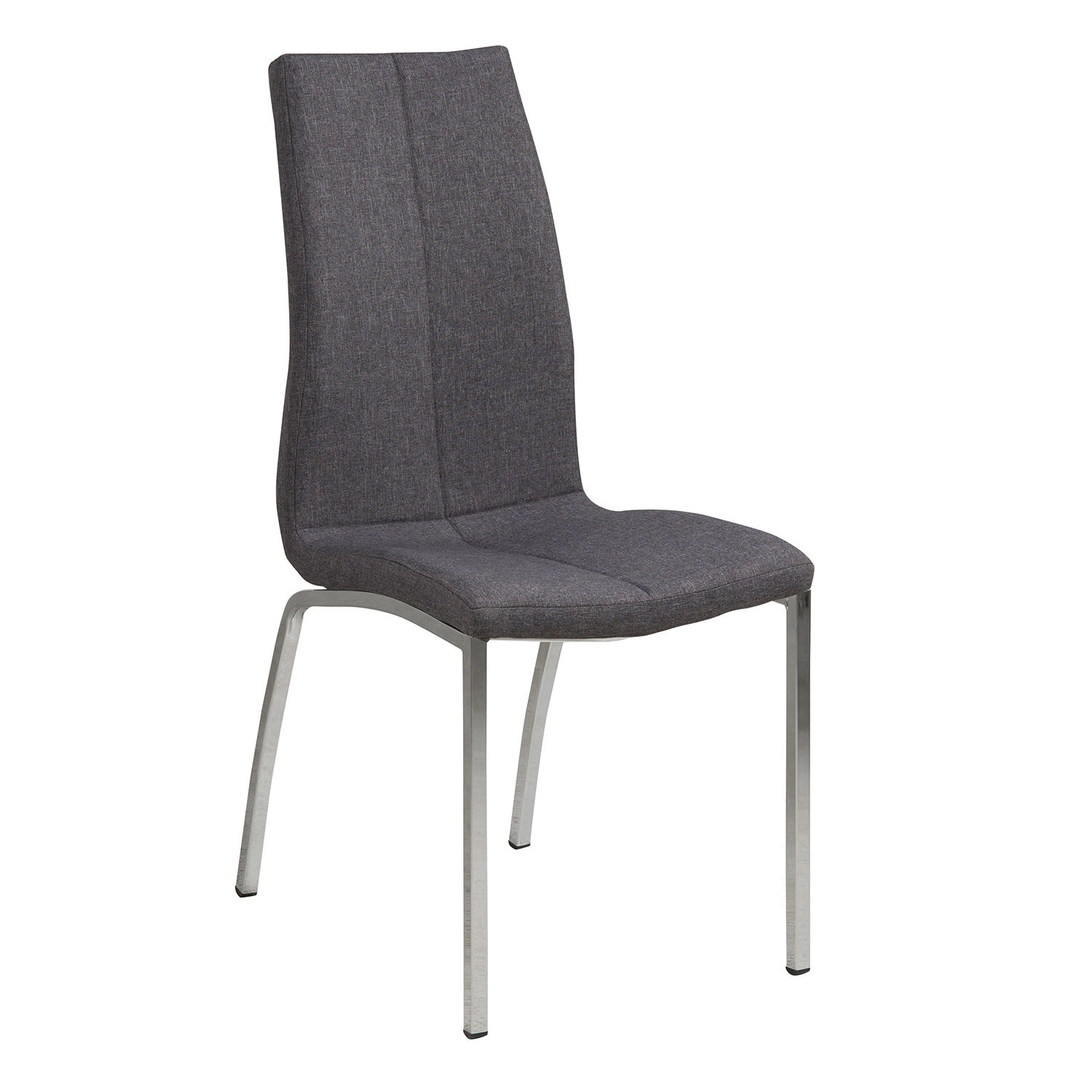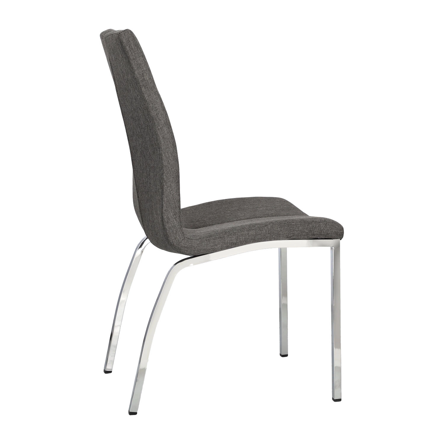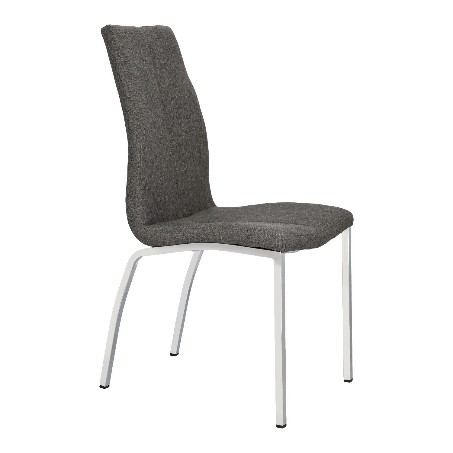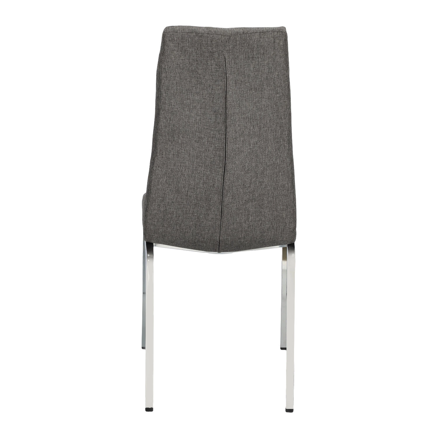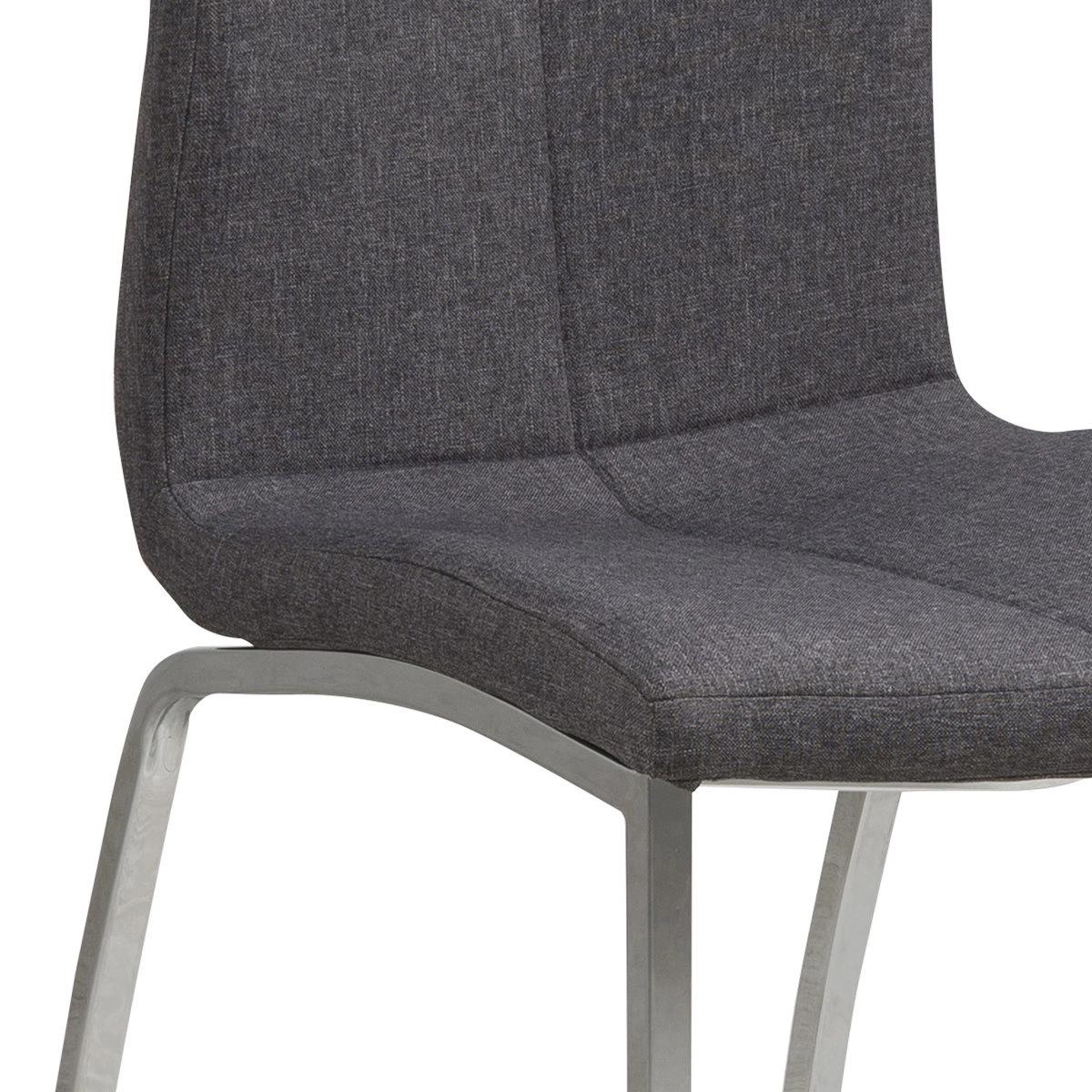 - Krzesło Asama jest tapicerowane wysokiej jakości tkaniną w szarym kolorze.
