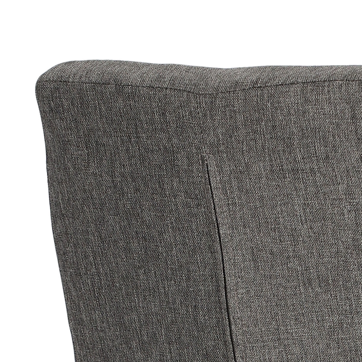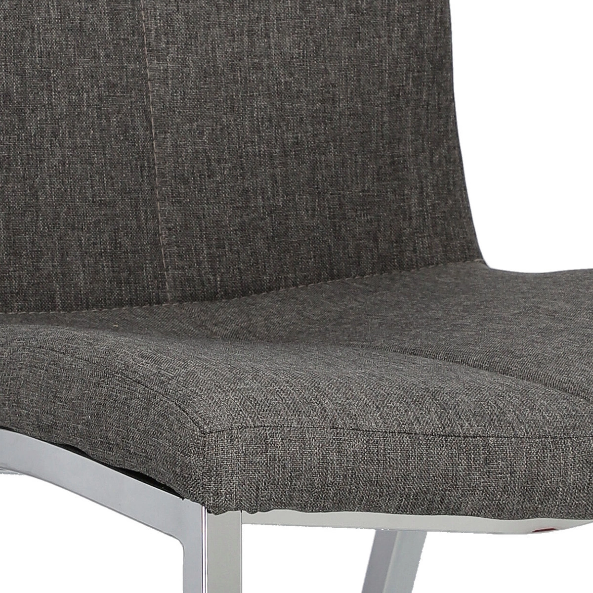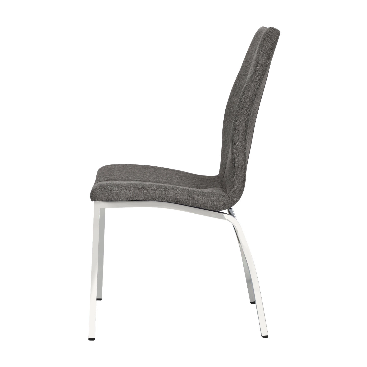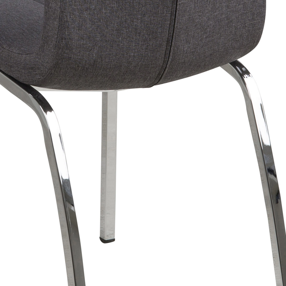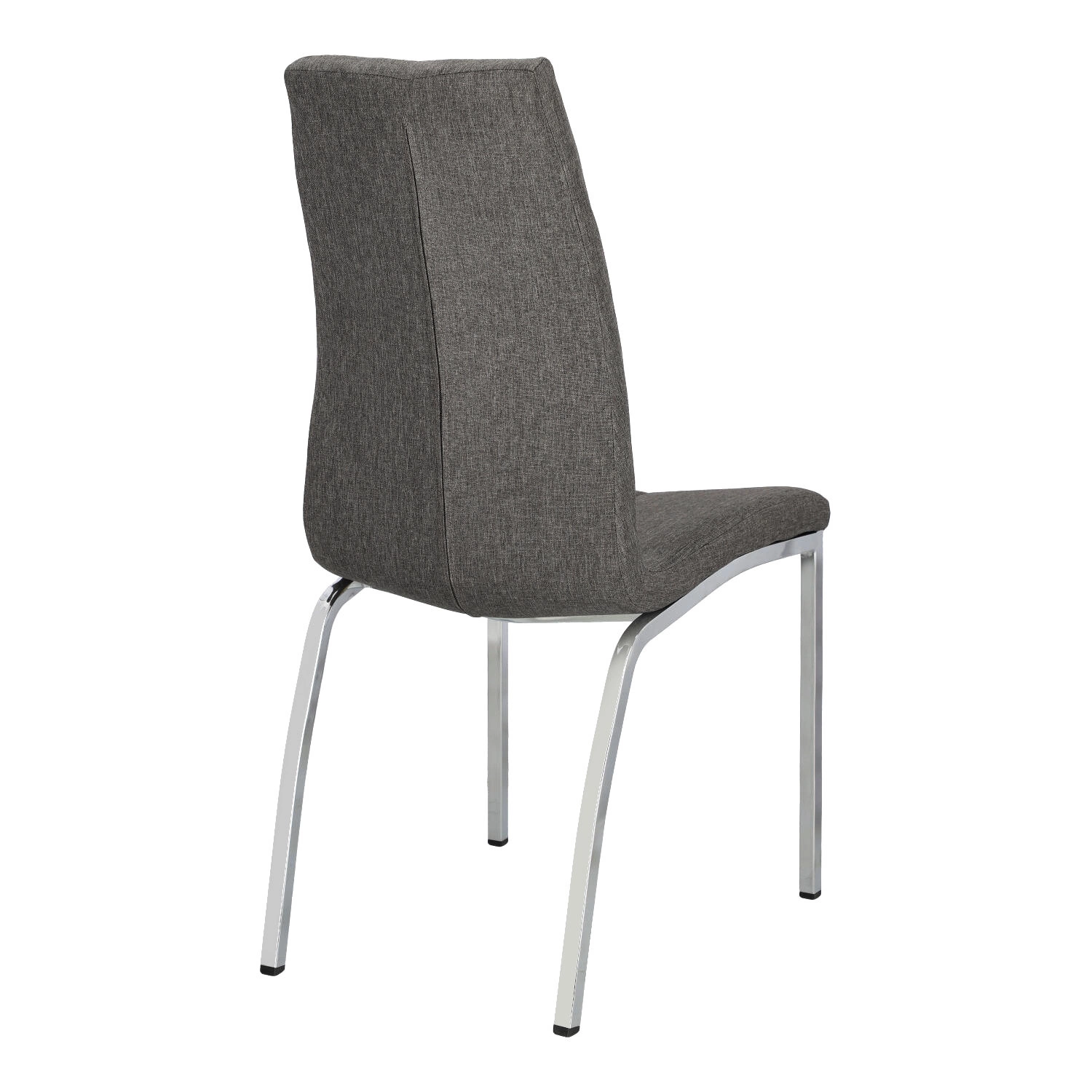 - Krzesło Asama jest tapicerowane wysokiej jakości tkaniną w szarym kolorze.