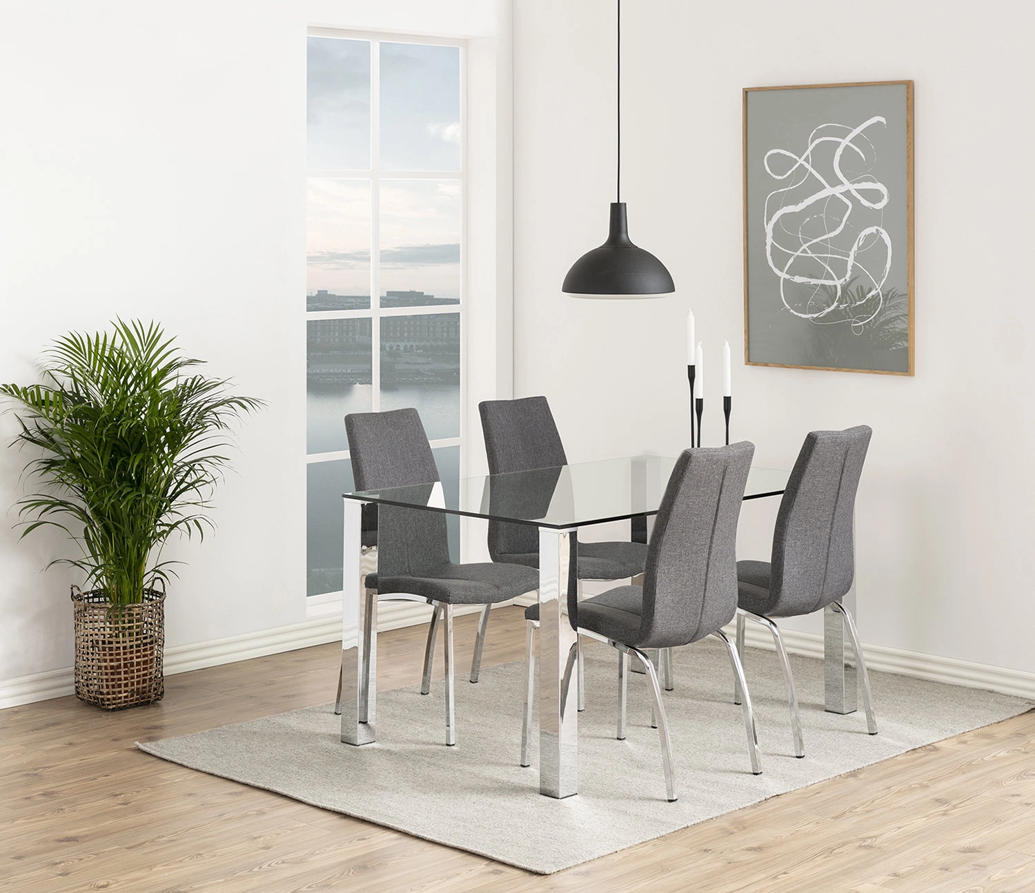 Krzesło Asama, marki Actona, to synonim elegancji i funkcjonalności. Wykonane z wysokiej jakości tkaniny w odcieniu szarości, z subtelną tweedową fakturą, dodaje uroku każdemu pomieszczeniu. Jednoczęściowe siedzisko i oparcie, pokryte tą samą tkaniną, tworzą harmonijną całość. Oparcie krzesła ma piękne, łagodne wygięcie, które zapewnia nie tylko estetykę, ale także wygodę użytkowania. Dodatkowym atutem jest metalowa, chromowana podstawa z ciekawie wygiętymi nogami, które nadają całości nowoczesnego wyglądu.