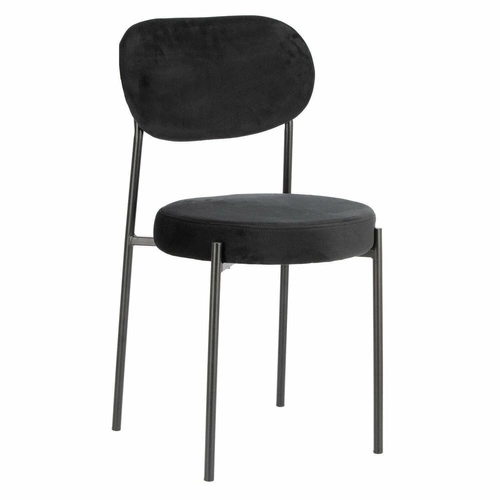 Szukasz ponadczasowych rozwiązań, które wraz z biegiem czasu nie przestaną być modne? Krzesło tapicerowane Camile to połączenie wyjątkowego designu z ponadczasowymi materiałami, które zapewni komfort nawet podczas długiego siedzenia przy stole. Okrągłe siedzisko wraz z wyprofilowanym oparciem nadaje temu modelowi futurystycznego wyglądu, a także pozwala na odpowiednią postawę ciała. Elementy miękkie wyprofilowane zostały z giętej sklejki i wypełnione pianką tapicerską, a następnie pokryte tkaniną przypominającą welur. Jej powierzchnia jest gładka i przyjemna w dotyku, a także daje ciekawe efekty wizualne. Siedzisko krzesła spoczywa na metalowym krzyżaku, który łączy ze sobą malowane proszkowo na czarno nogi. Podstawa mimo smukłej konstrukcji zapewnia odpowiednią stabilność, a także dodaje wizualnej lekkości.