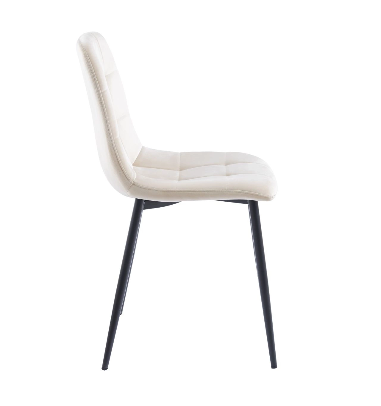 Tapicerka wykonana z welwetowej tkaniny jest nie tylko miła w dotyku, ale również nadaje wnętrzu subtelny, luksusowy charakter. Ozdobne pikowania na całej powierzchni tapicerki dodają krzesłu wyrafinowanego wyglądu, podkreślając jego wysoką jakość wykonania. Stelaż krzesła wykonany został z metalu malowanego proszkowo, co gwarantuje jego trwałość i stabilność. Czarne, smukłe nogi doskonale komponują się z beżową tapicerką, tworząc harmonijną całość. Dzięki swojemu uniwersalnemu designowi oraz dostępności w różnorodnych kolorach, krzesło Caro Velvet świetnie wpasowuje się zarówno do stołu jadalnianego, jak i eleganckiej toaletki.