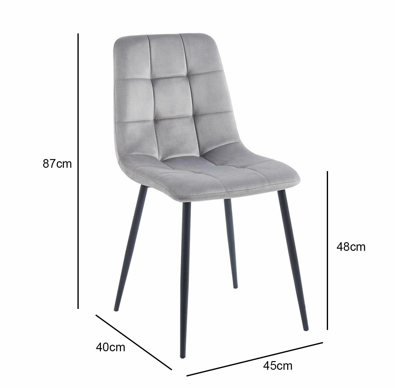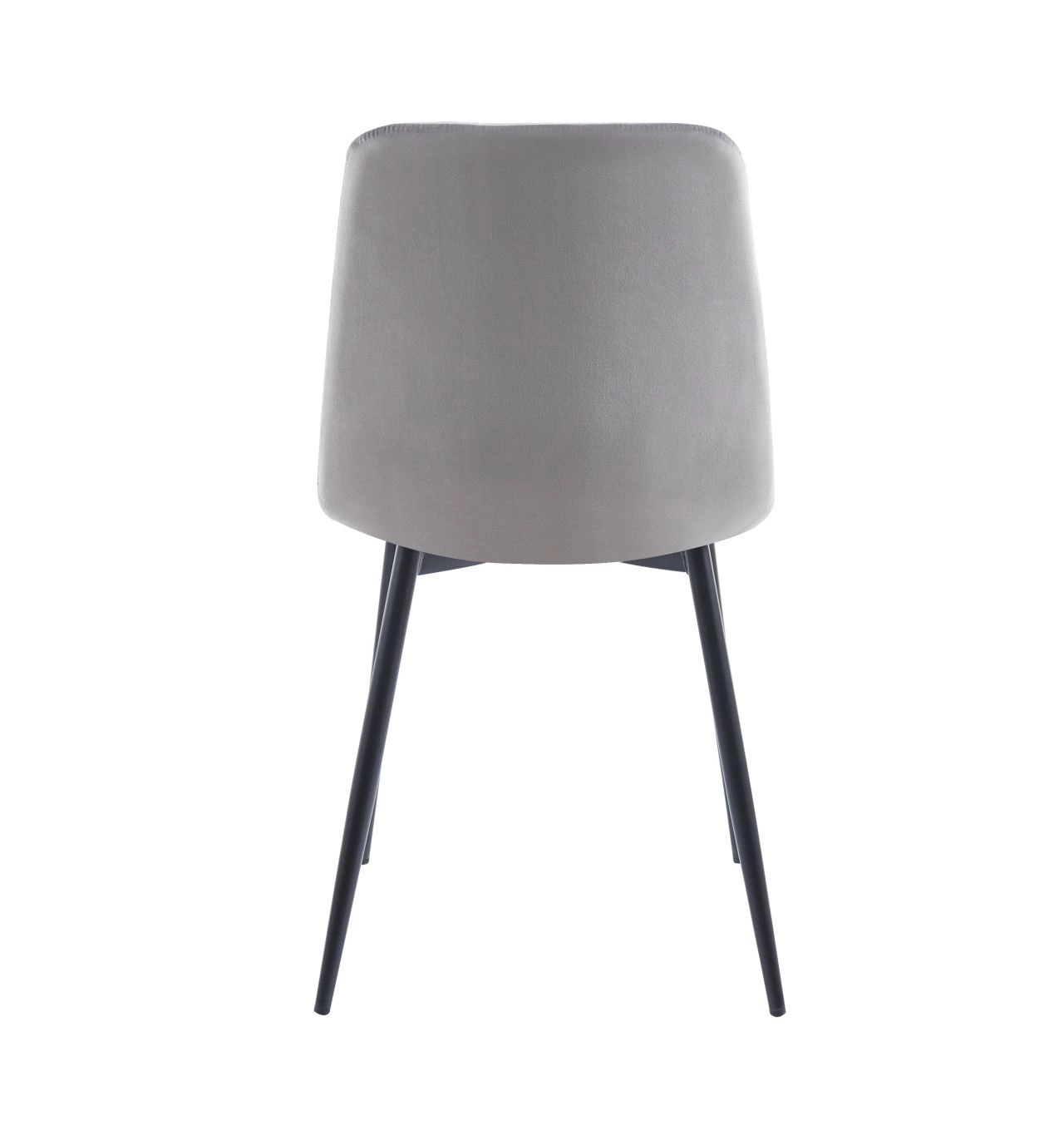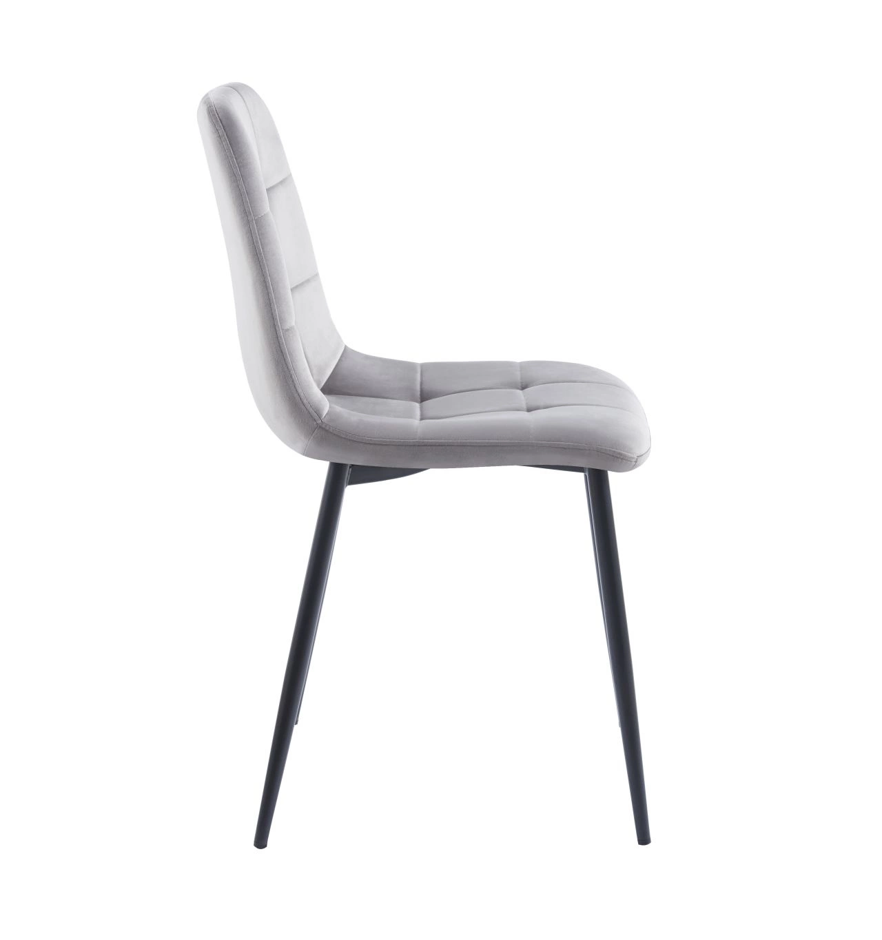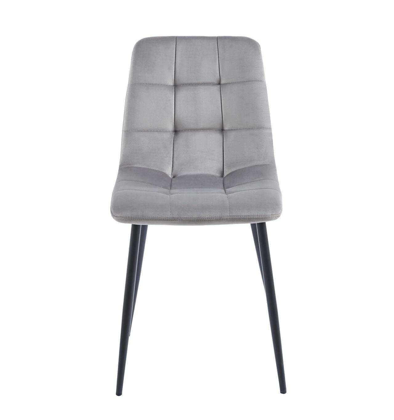 Tapicerka wykonana z welwetowej tkaniny jest nie tylko miła w dotyku, ale również nadaje wnętrzu subtelny, luksusowy charakter. Ozdobne pikowania na całej powierzchni tapicerki dodają krzesłu wyrafinowanego wyglądu, podkreślając jego wysoką jakość wykonania. Stelaż krzesła wykonany został z metalu malowanego proszkowo, co gwarantuje jego trwałość i stabilność. Czarne, smukłe nogi doskonale komponują się z szarą tapicerką, tworząc harmonijną całość. Dzięki swojemu uniwersalnemu designowi oraz dostępności w różnorodnych kolorach, krzesło Caro Velvet świetnie wpasowuje się zarówno do stołu jadalnianego, jak i eleganckiej toaletki.