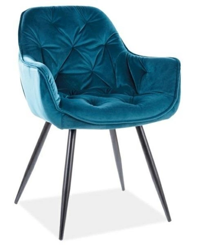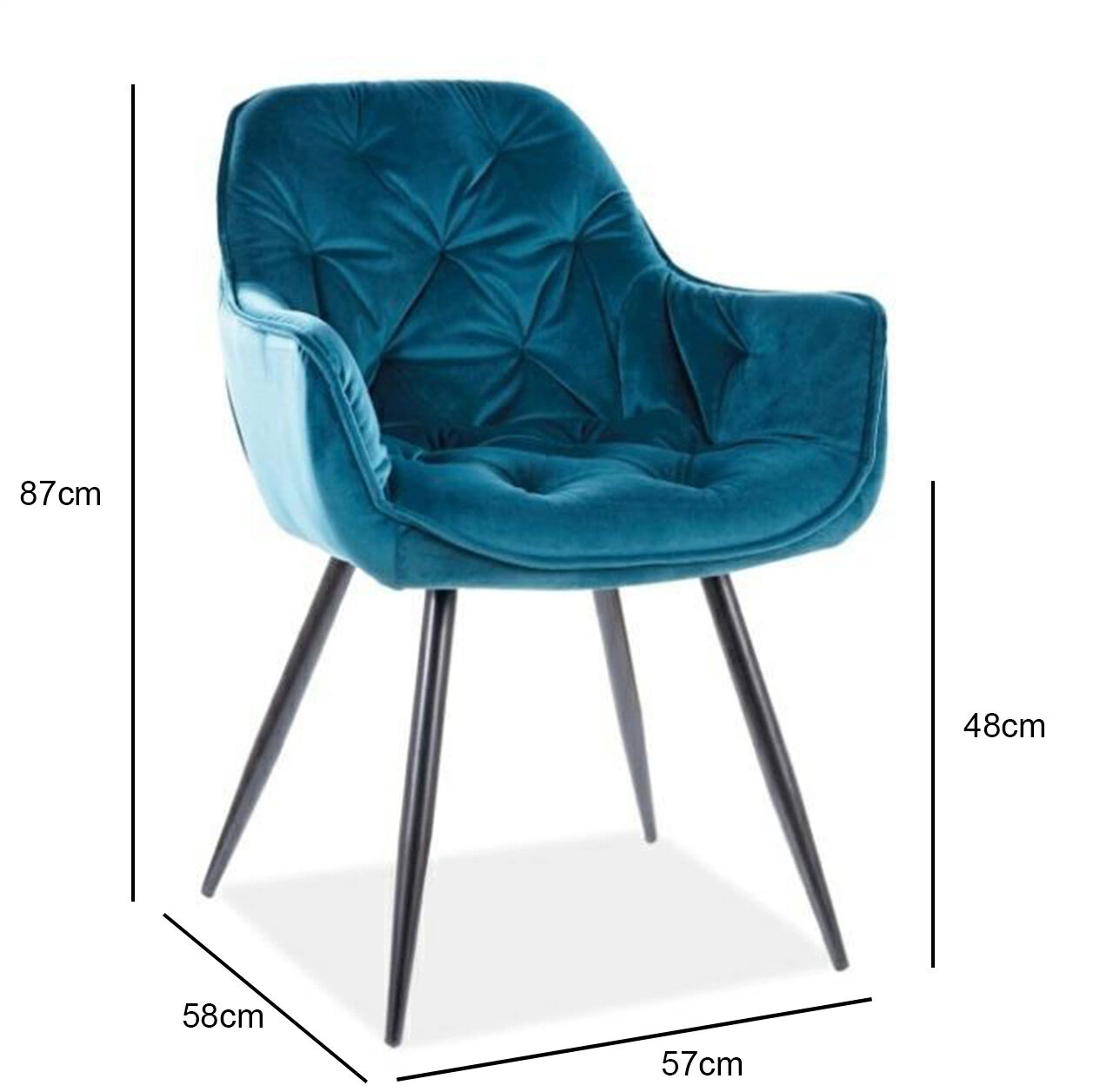 Krzesło z podłokietnikami, pikowanym siedziskiem i oparciem oraz czarnymi nogami sprawdzi się we wnętrzu nie tylko glamour. Nowoczesny salon lub jadalnia to idealne miejsce na pikowane, aksamitne krzesło tapicerowane. Miękkie, pikowane siedzisko jest wygodne do siedzenia, a cztery czarne malowane proszkowo nogi zapewniają niesamowitą stabilność.